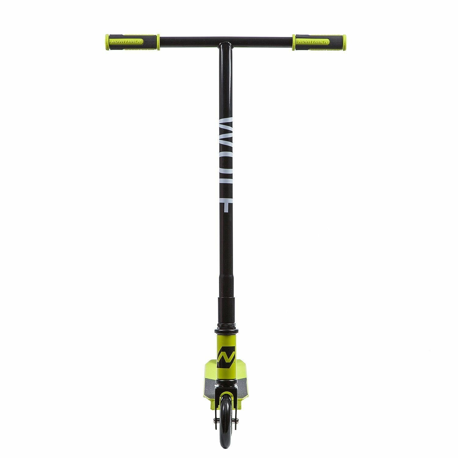 NOVATRACK 110PWOLFBGN9 Самокат 2-х колесный 110 мм Трюковый подростковый Wolf алюминиевый не складной 100 кг неоновый зеленый Novatrack 110P.WOLF.BGN9