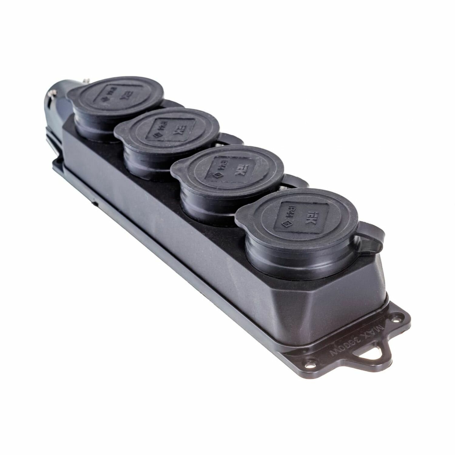 Колодка розеточная IEK Омега, 3 гнезда, с крышками, с заземлением, 16 А, IP44, черная