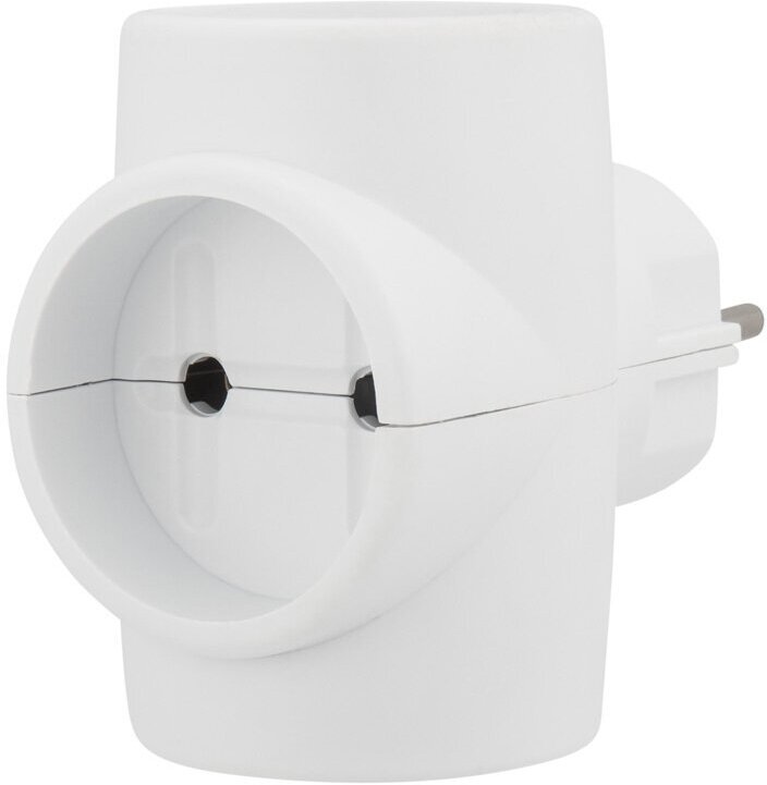 Тройник для розетки электрический с заземлением 16А, белый