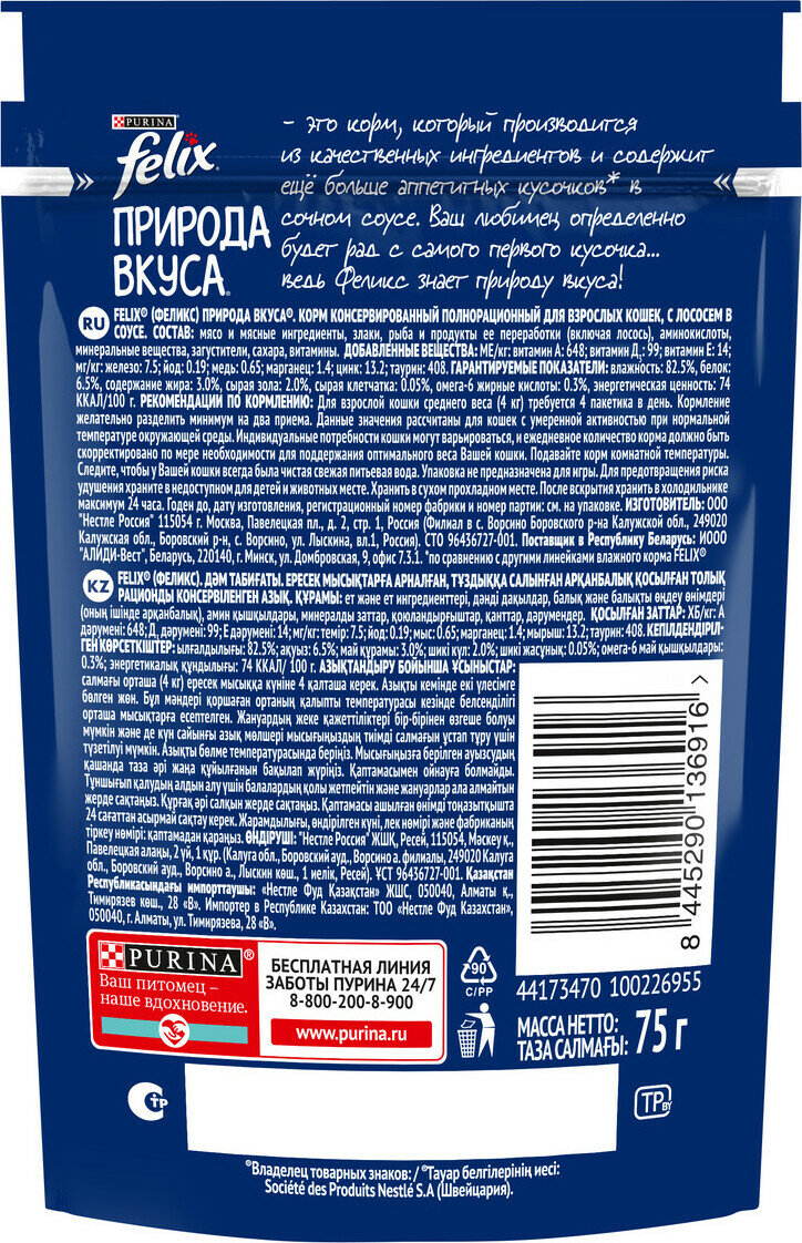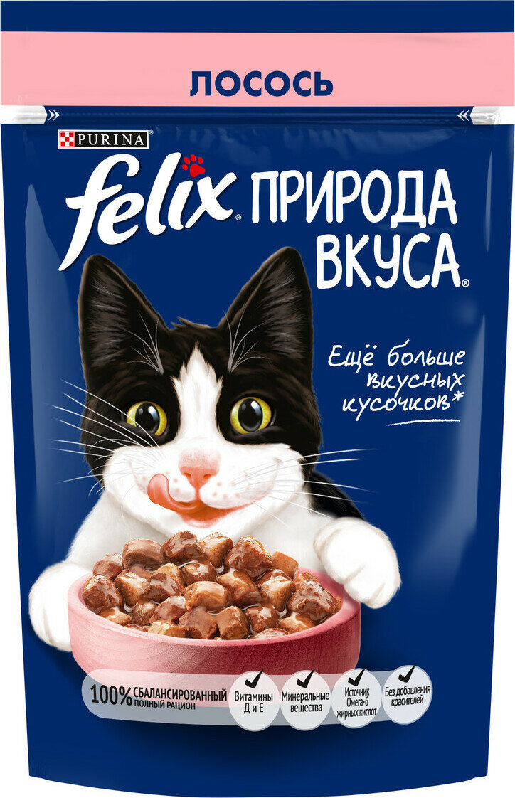 Влажный корм Felix Природа вкуса для взрослых кошек, с лососем в соусе, 75 г*26 шт интересное: