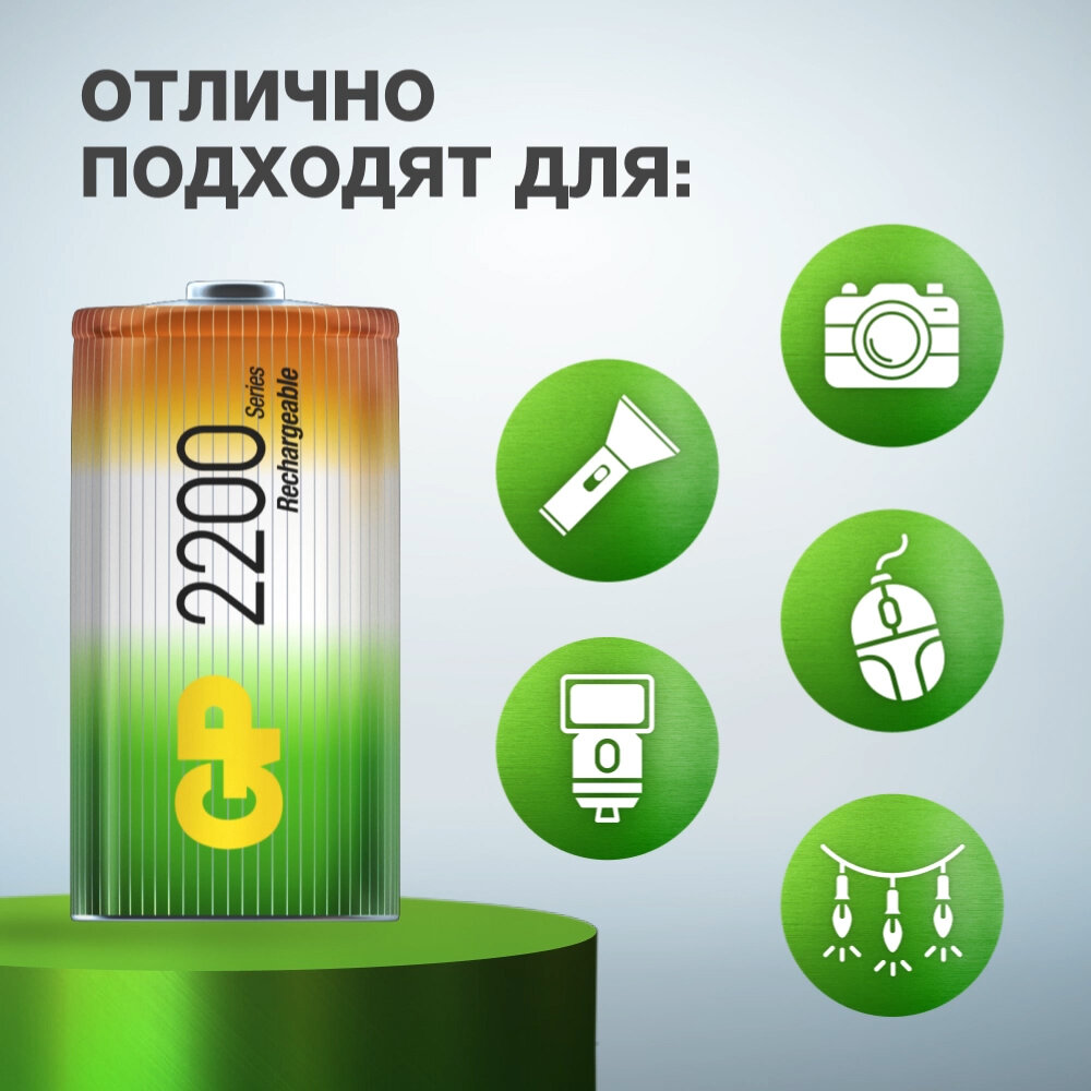 Перезаряжаемые аккумуляторы GP C 2200 мАч 2 шт 220CH-2CR2