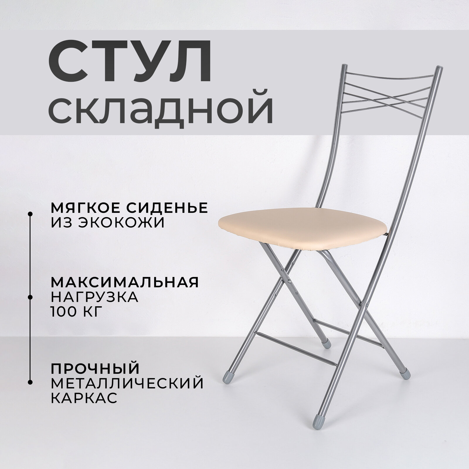 Стул складной "Ника1" с мягким сиденьем, до 100 кг, цвет серый/бежевый
