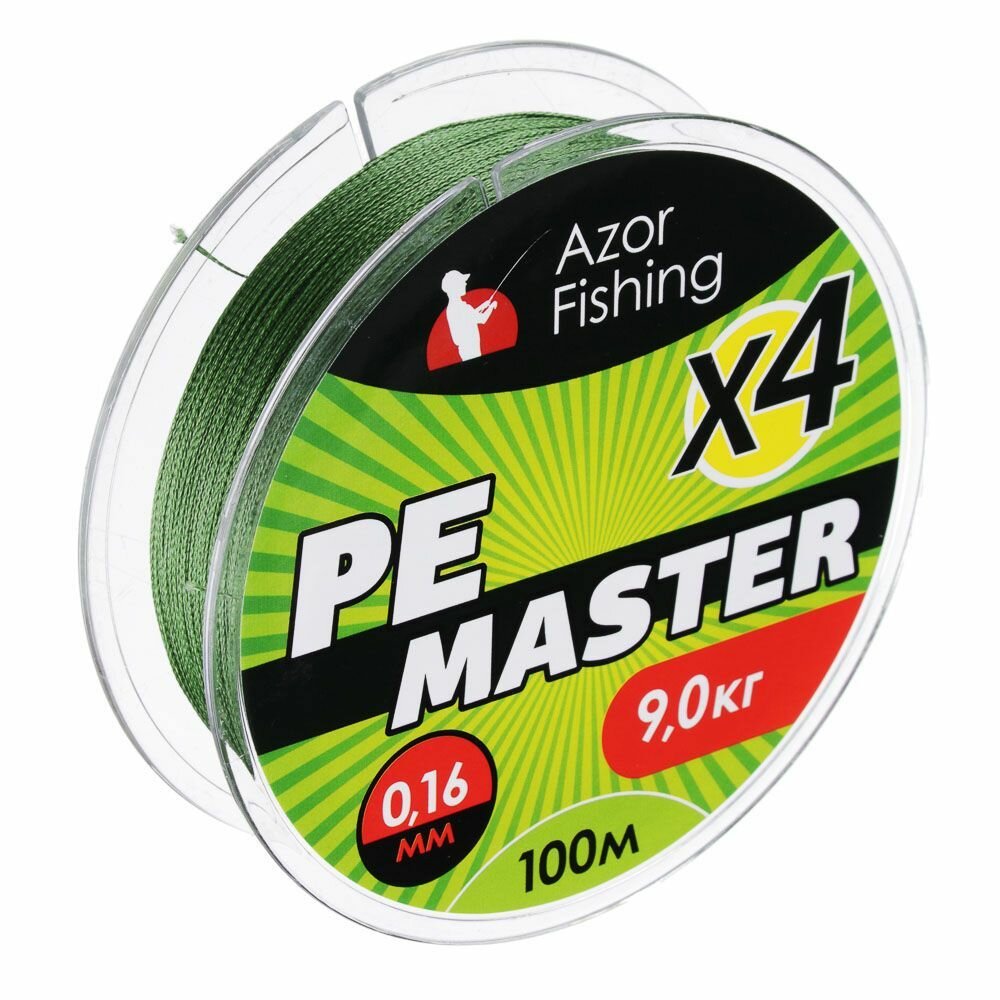 AZOR FISHING Леска плетеная, PE Мастер, 100м, 0, 16мм, 9, 0кг, зеленая