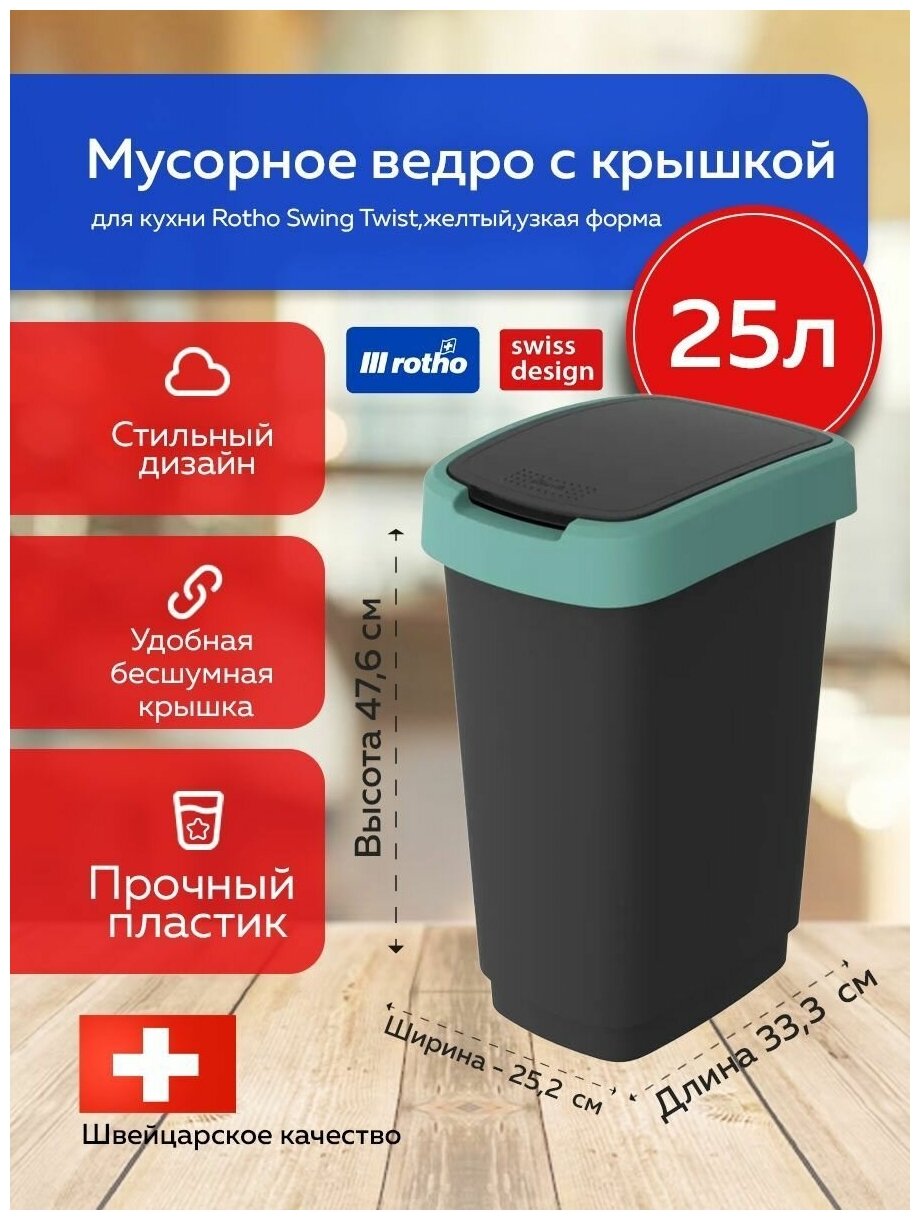 Мусорное ведро с откидной крышкой для кухни и дома Rotho Swing Twist 25 литров