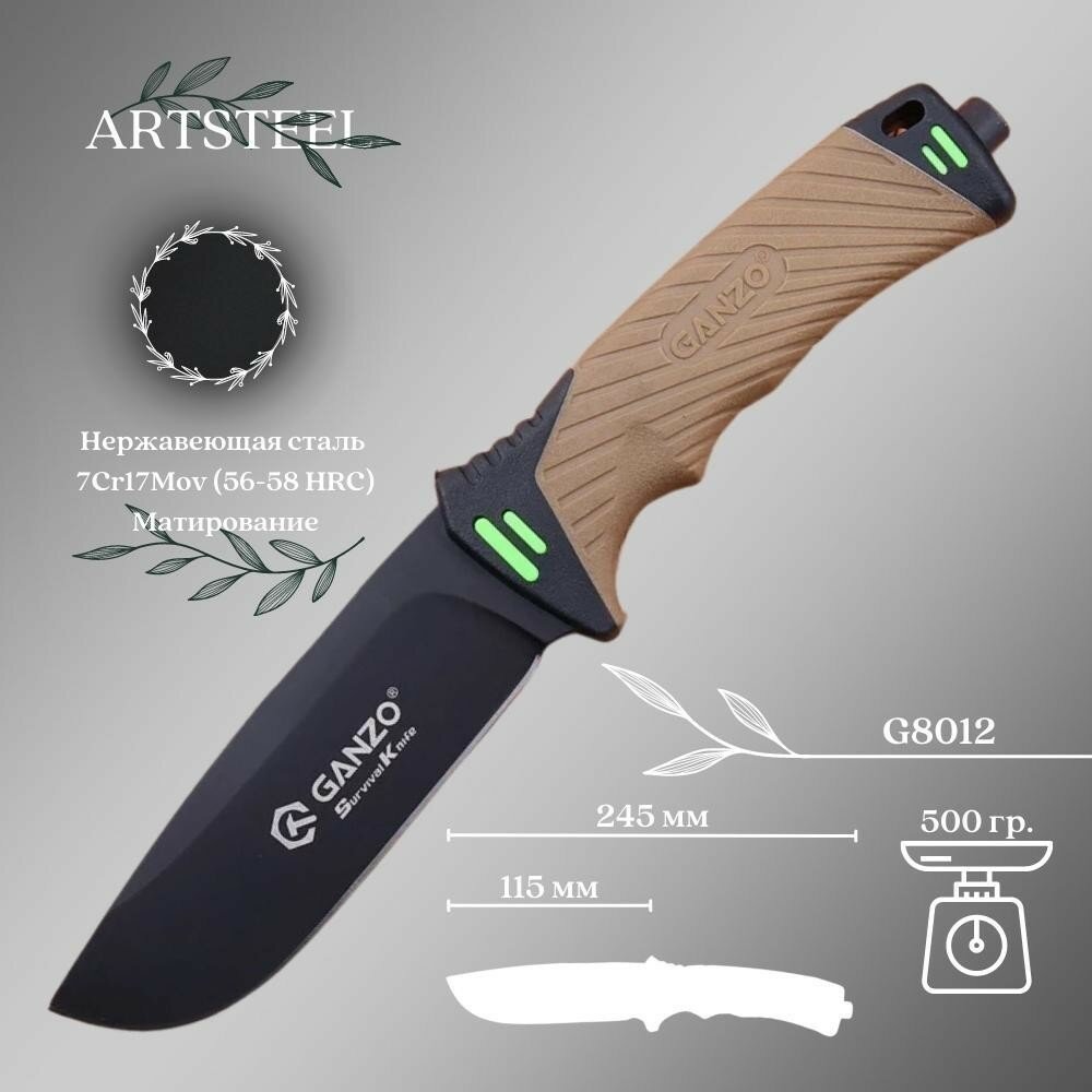 Нож нескладной туристический GANZO G8012 песочный/черный