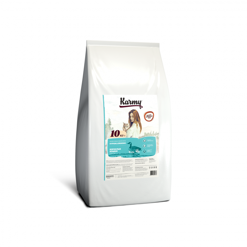 Корм Karmy Hypoallergenic для кошек, склонных к пищевой аллергии, с уткой, 10 кг