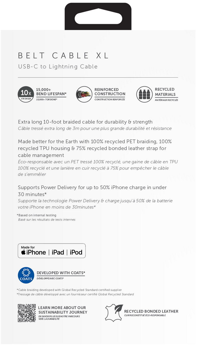 Купить Кабель Native Union Belt Cable USB-С - Lightning (3 м), нейлон, черный