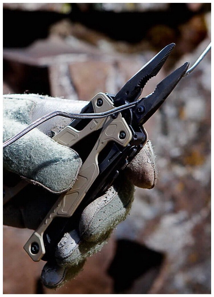 | Плюсы: | Удобно работать одной рукой, все инструменты на лайнер-лок. Оригинальная конструкция пассатижей с возможностью блокировки в закрытом положении. Кусачки сменные. Нож, серрейтор, стропорез, несколько отвёрток, пила, открывалка. Всё в нейлоновом чехле на липучке. |