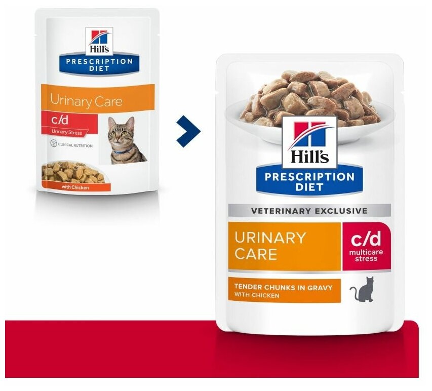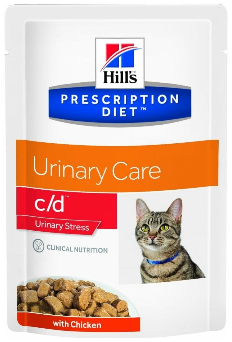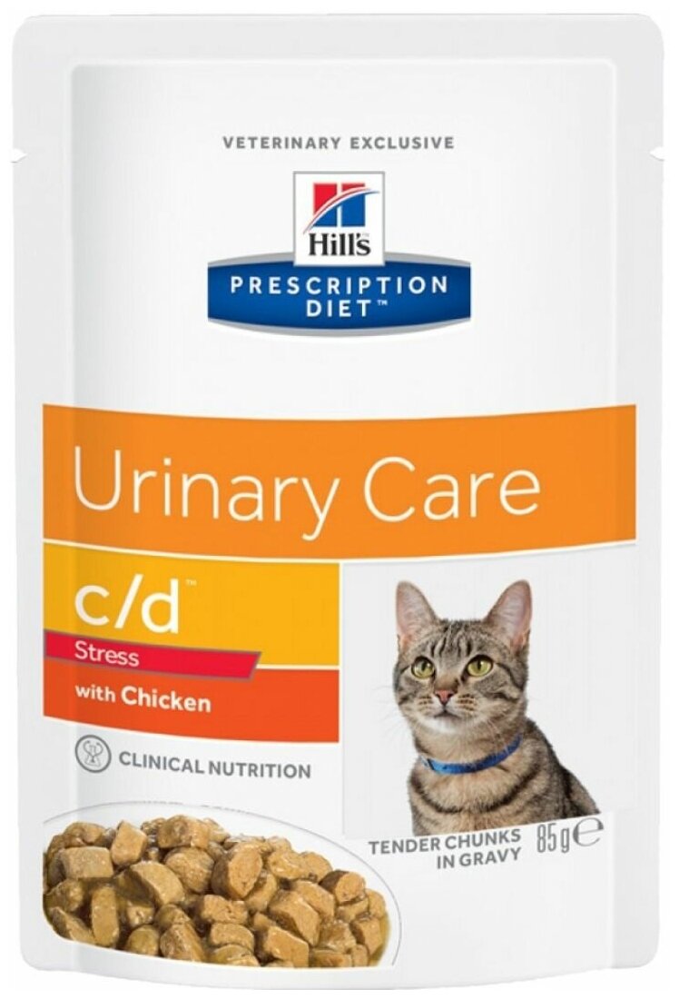 корм для кошек Hill's Prescription Diet c/d при профилактике цистита, вызванного стрессом и для контроля веса, с курицей 12 шт. х 85 г (кусочки в соусе)