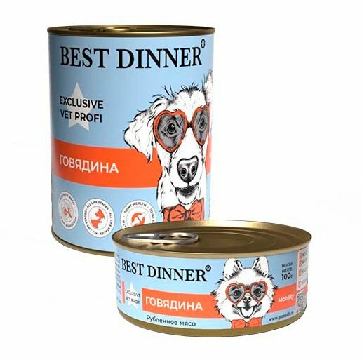 Best Dinner Бест Диннер консервы для собак Exclusive Mobility, говядина, 340 гр. по 6 шт.