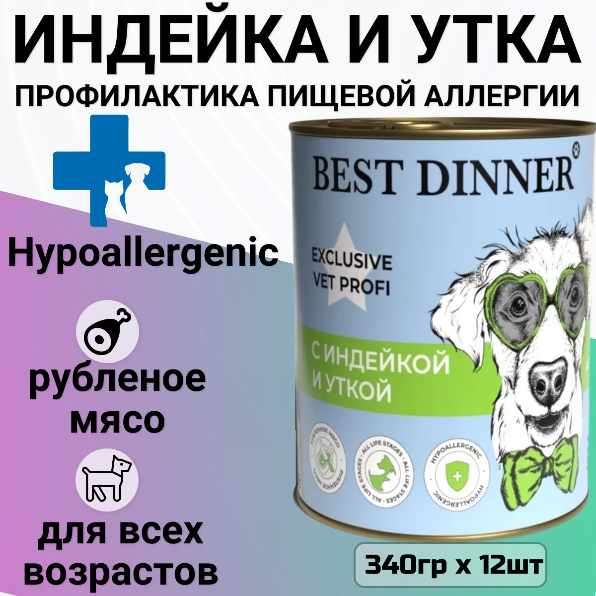 BEST DINNER EXCLUSIVE VET PROFI HYPOALLERGENIC для собак и щенков при пищевой аллергии с индейкой и уткой (340 гр х 12 шт)