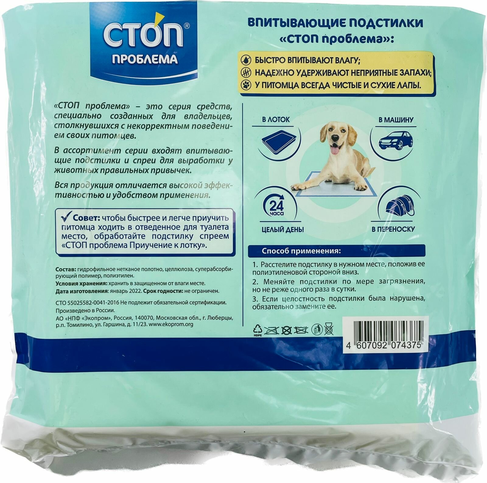 Экопром S206 стоп проблема Подстилки впитывающие для собак и кошек 60*90*4шт