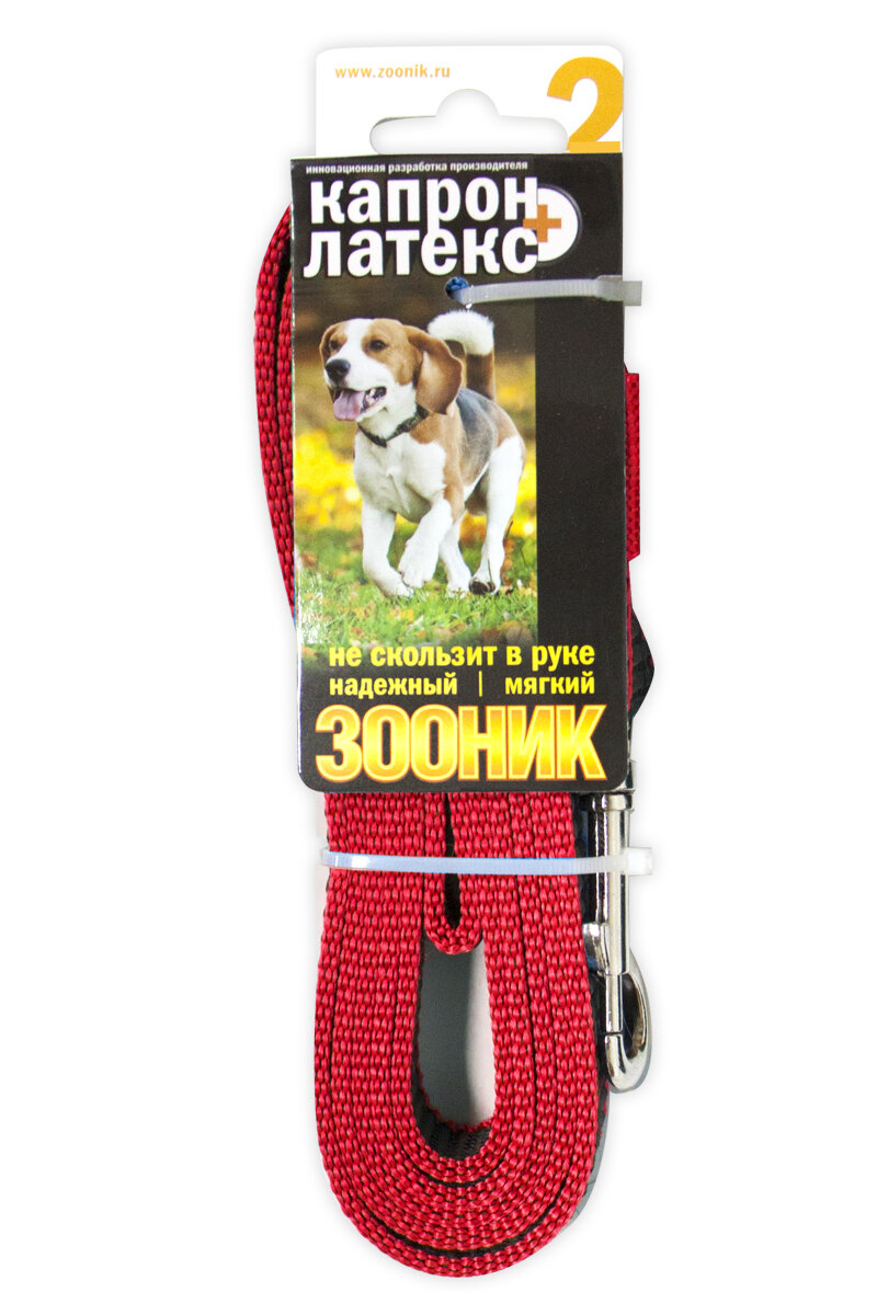 Поводок (Зооник) 2м*20мм, капрон с латексной нитью, красный