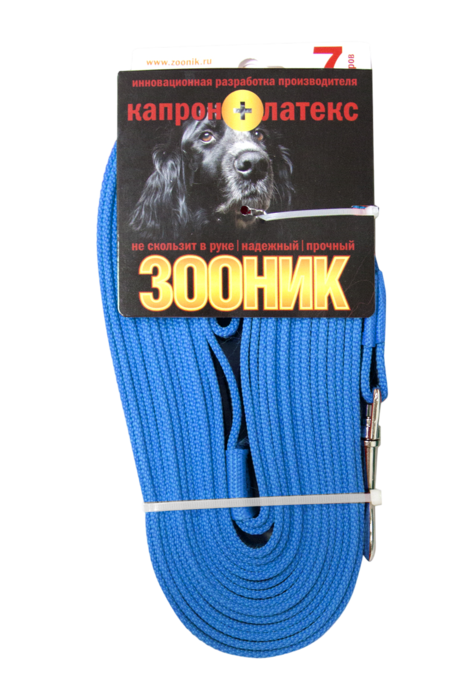 Поводок зооник капроновый с латексной нитью 7м х 20мм, Синий
