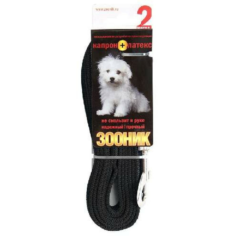 Поводок для собак Зооник 20/700 капроновый, с латексной нитью, черный