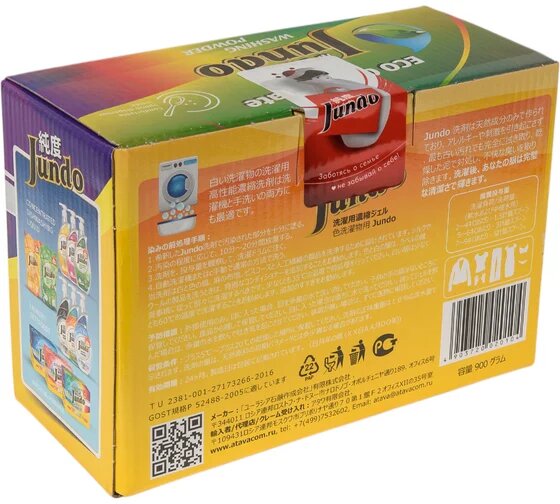 На упаковке в основном информация указана на английском и, видимо, корейском или японском языках. Нарисованы иероглифы. Есть этикетка на русском языке, специальная наклейка. Порошок является концентратом: он экономичный. Стиральный порошок гипоаллергенный; он подходит для любого белья - и для верхней одежды, и для нижнего белья. Стирать можно и вручную этим средством, и в стиральной машине. Для машинной стирки подходит любая температура воды, от 30 до 90 градусов. Внутри картонной коробки есть мерная ложечка, что очень удобно. Экологичный стиральный порошок Jundo хорошо отстирывает белье. Этот порошок достаточно мягкий; никаких аллергий не вызывает, нет раздражения на коже тела. |