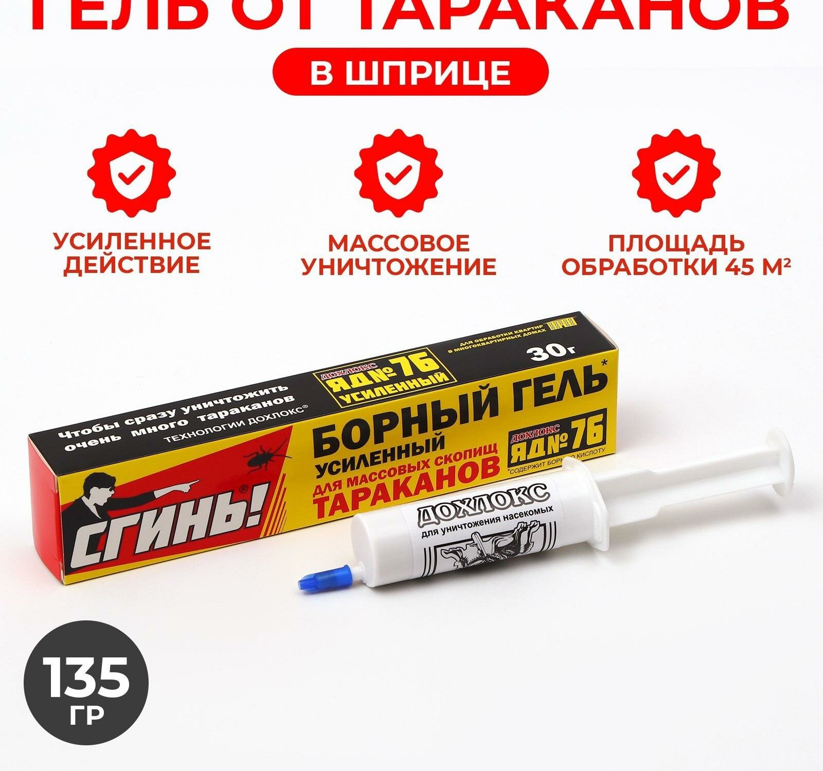Усиленный борный гель от тараканов сгинь! № 76 30 г, шприц 18031