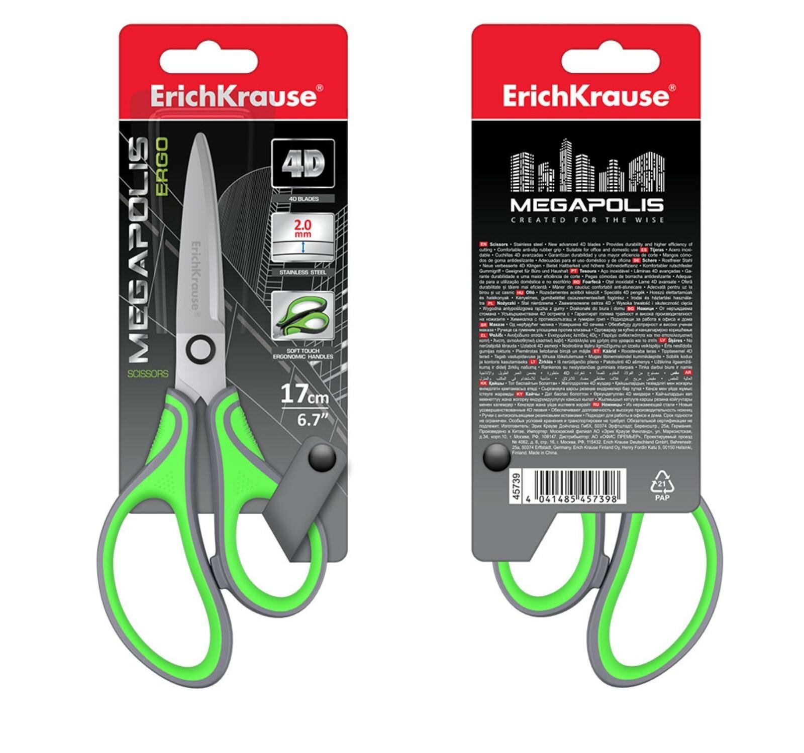 Ножницы 17см ErichKrause "Megapolis Ergo" в блистере 45739 4315634