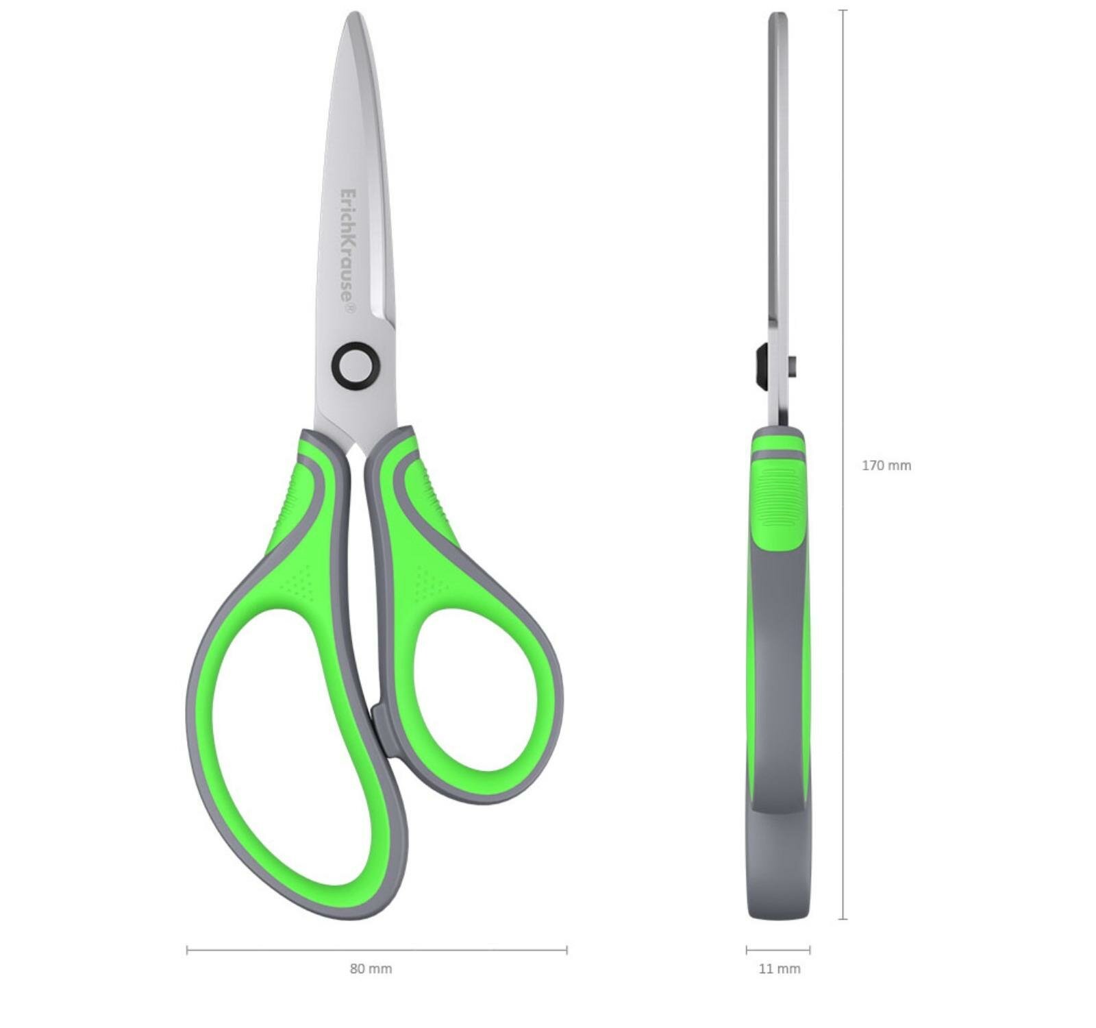 Ножницы Erich Krause Megapolis Ergo, 17 см, серо-зелёный (45739)