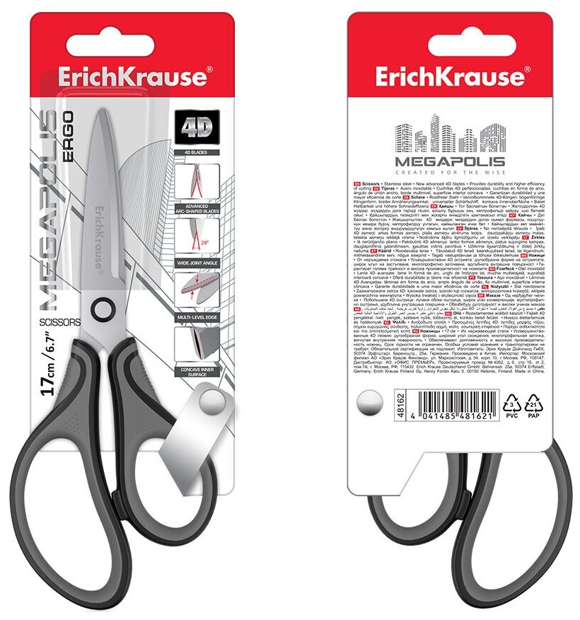 Ниже Вы можете прочитать отзывы на Ножницы Erich Krause Megapolis Ergo, 17 см, цвет серо-черный (48162), ознакомится с подробными характеристиками, посмотреть интересные обзоры и фотографии на Ножницы Erich Krause Megapolis Ergo, 17 см, цвет серо-черный (48162).