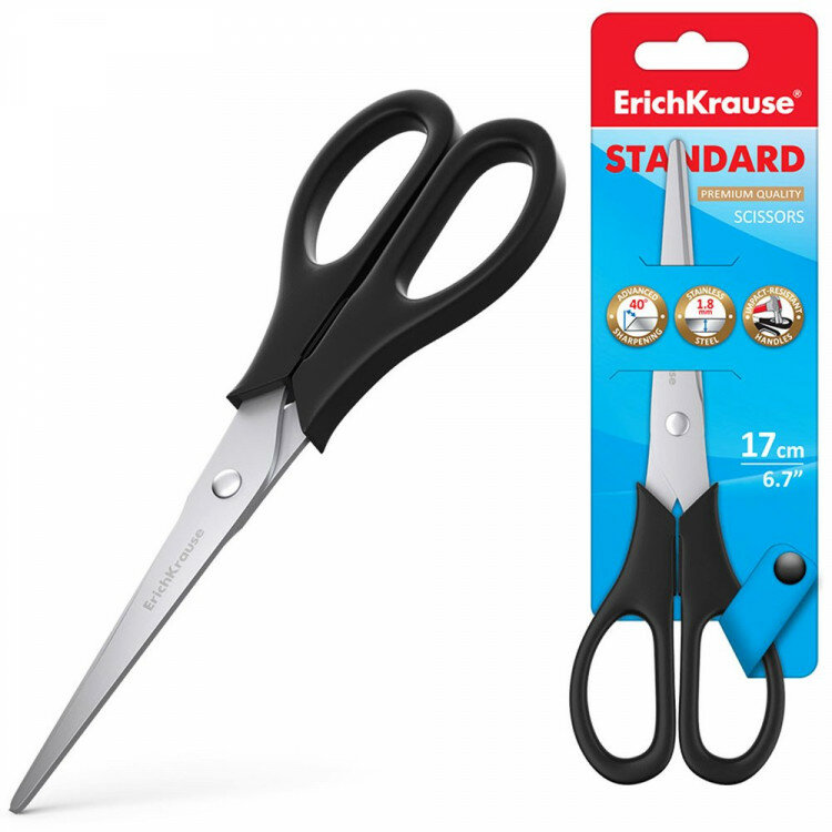 Ножницы ErichKrause Standard, 17см (в блистере по 1 шт.)