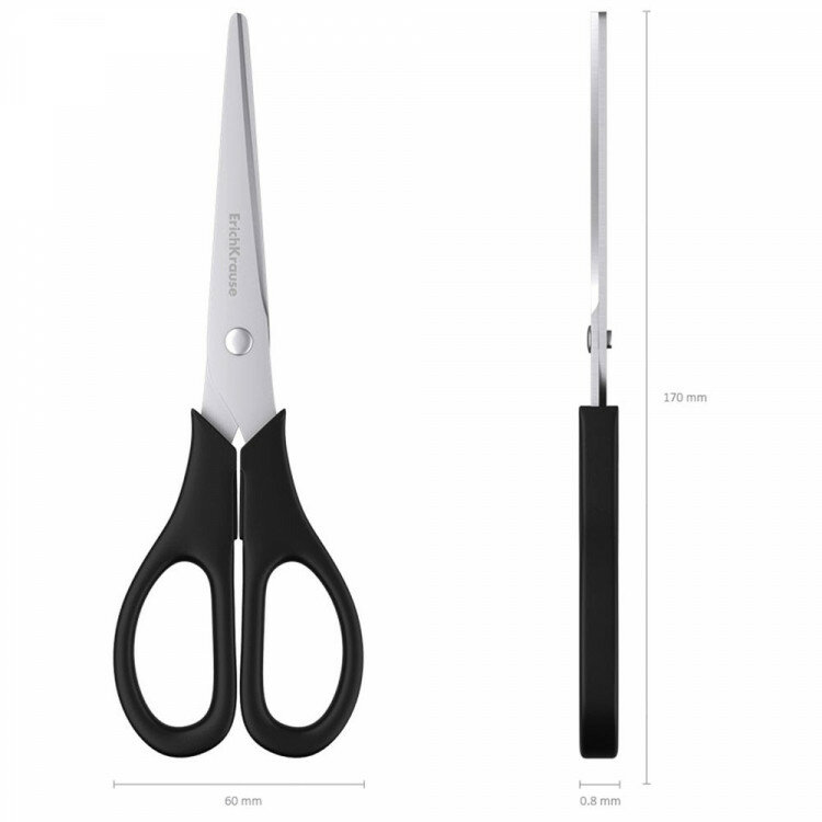 Ножницы ERICH KRAUSE "Standard", 170 мм, черные, в картонной упаковке с европодвесом, 14861