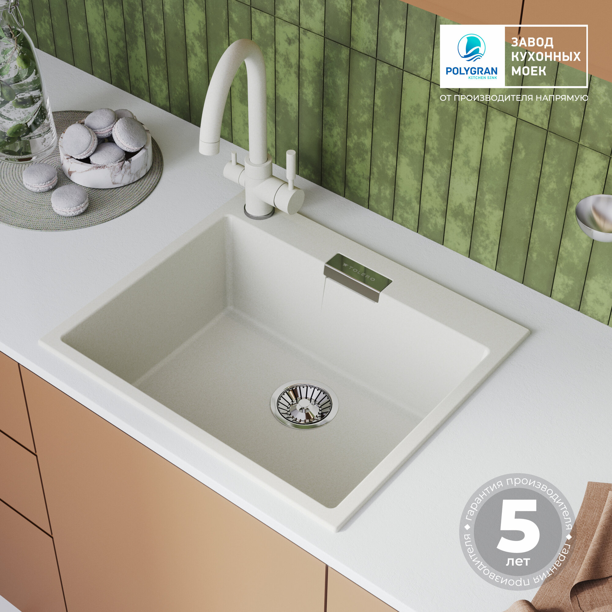 Tolero Кухонная мойка кварцевая, цвет белый TL-580 №923 473554