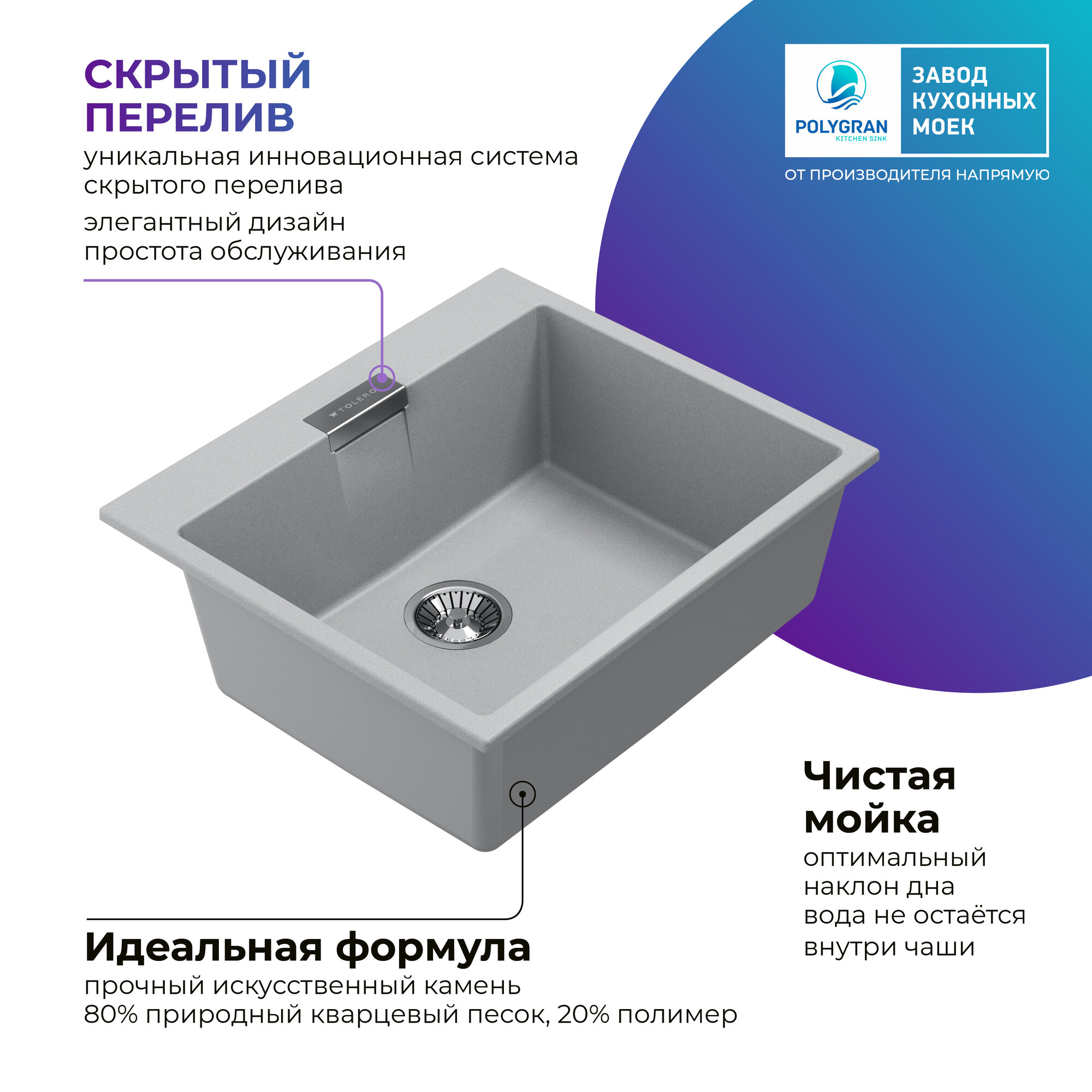 Polygran Мойка кухонная Tolero Loft TL-580 серый металлик