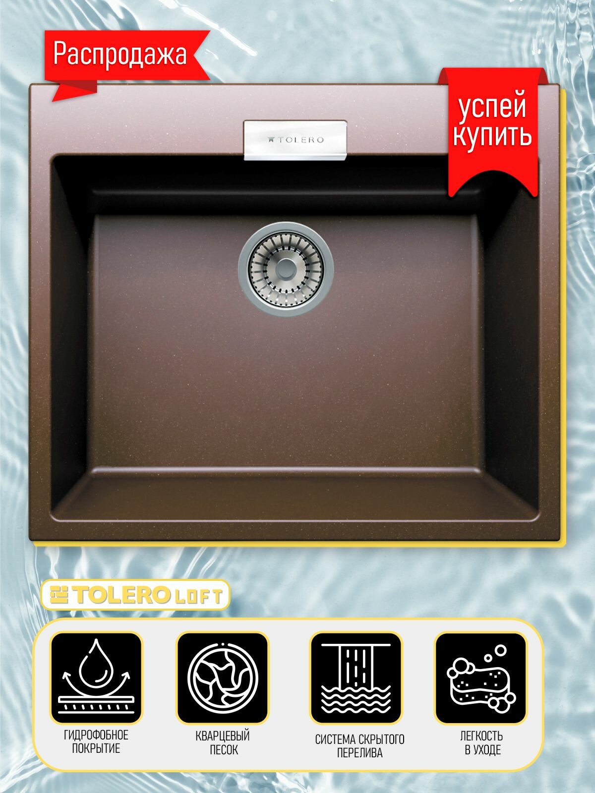 Купить Мойка для кухни кварцевая TOLERO Loft TL-580 (№817 Коричневый)