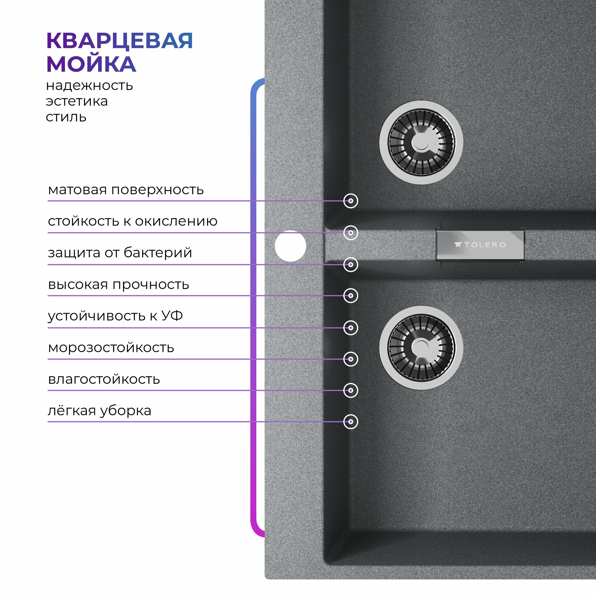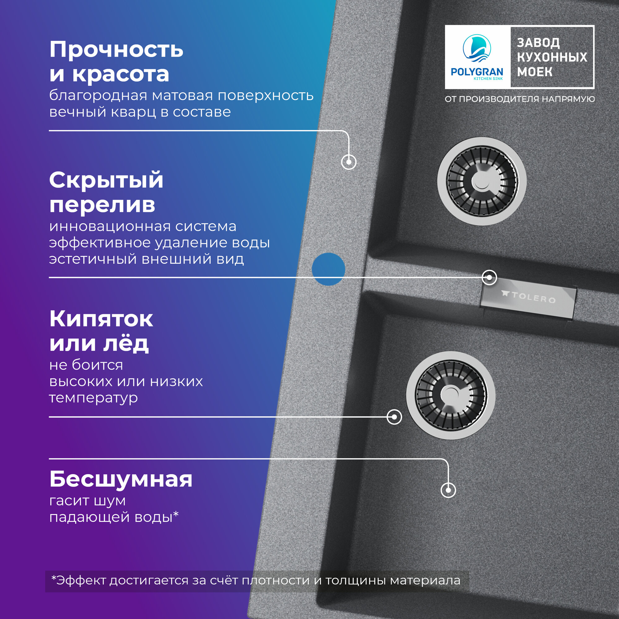 СохранитьКухонная мойка кварцевая TOLERO Loft TL-860 (Грей) интересное: