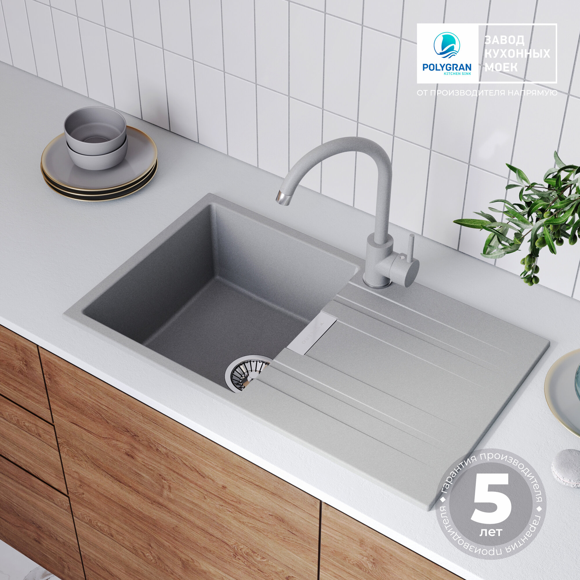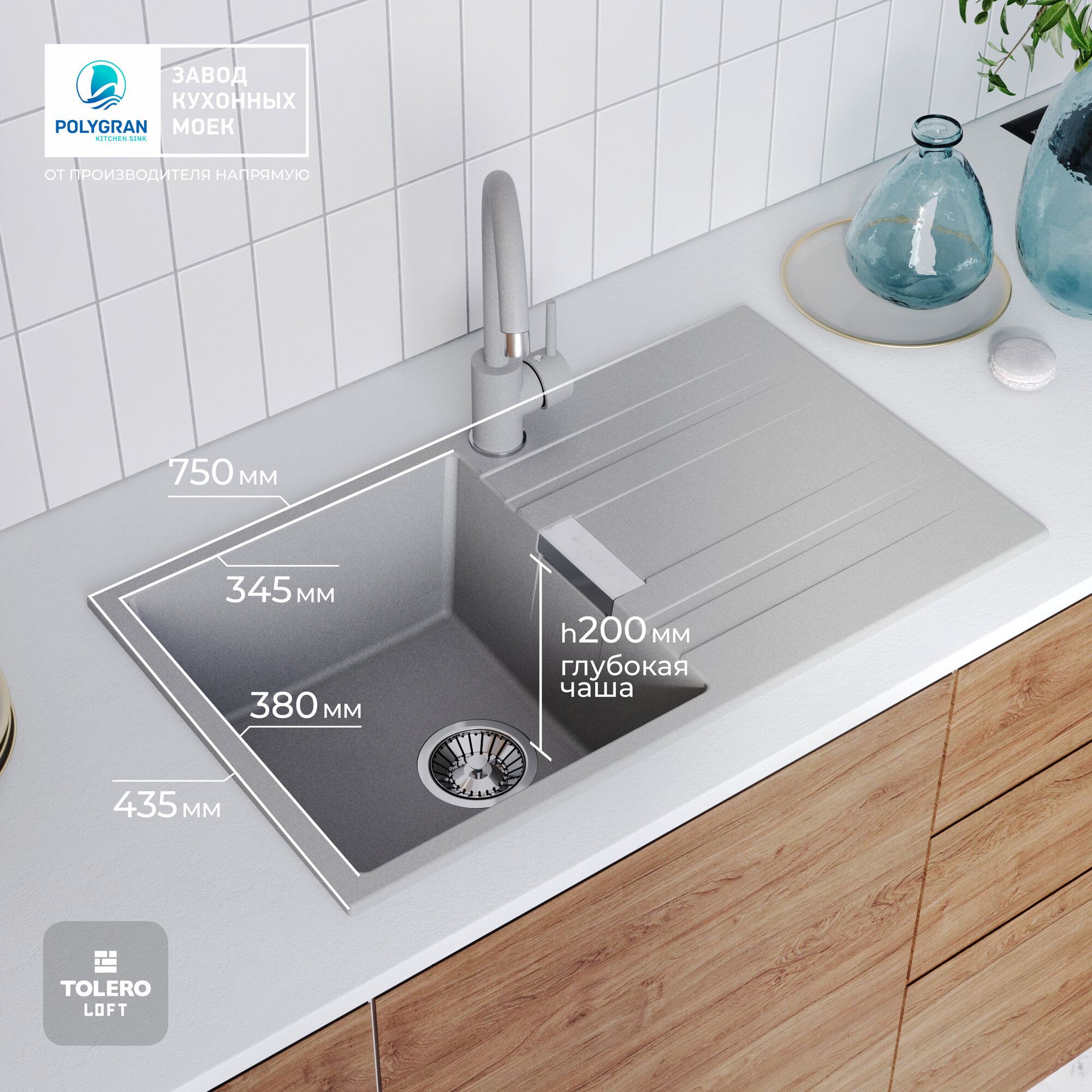 Мойка для кухни кварцевая с крылом TOLERO Loft TL-750 серая (Грей)