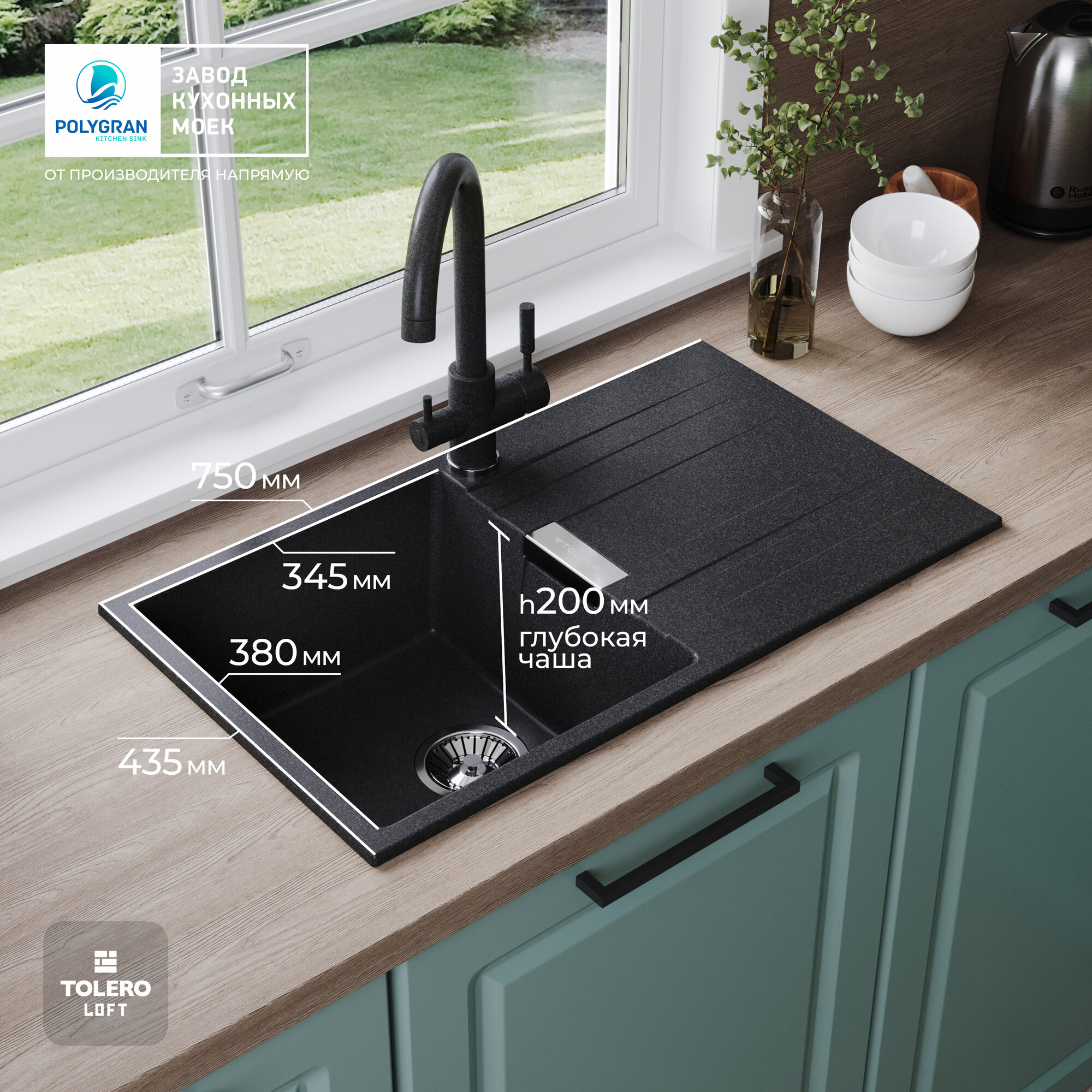 Мойки Tolero Loft TL-750, мойка, гранит, черный 911