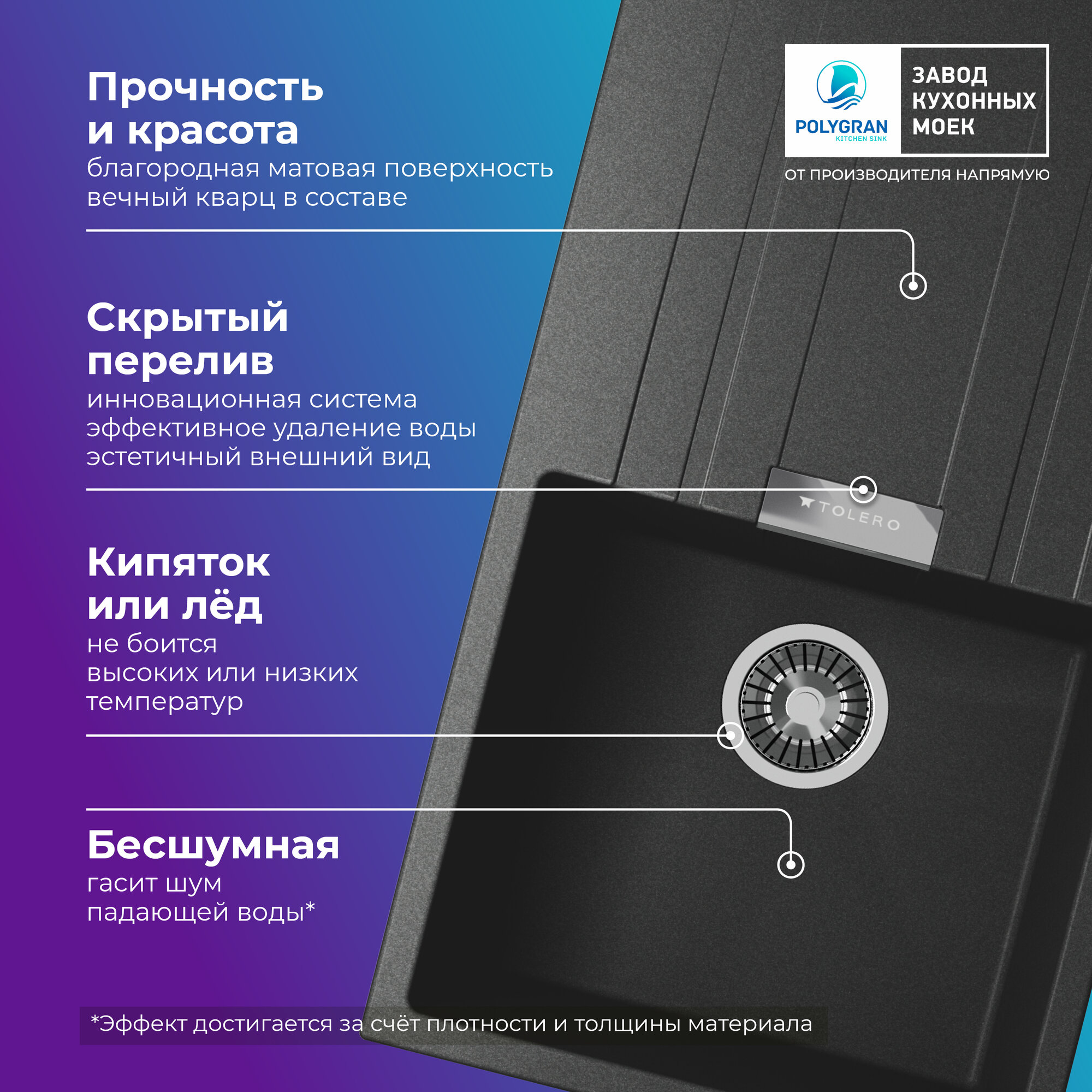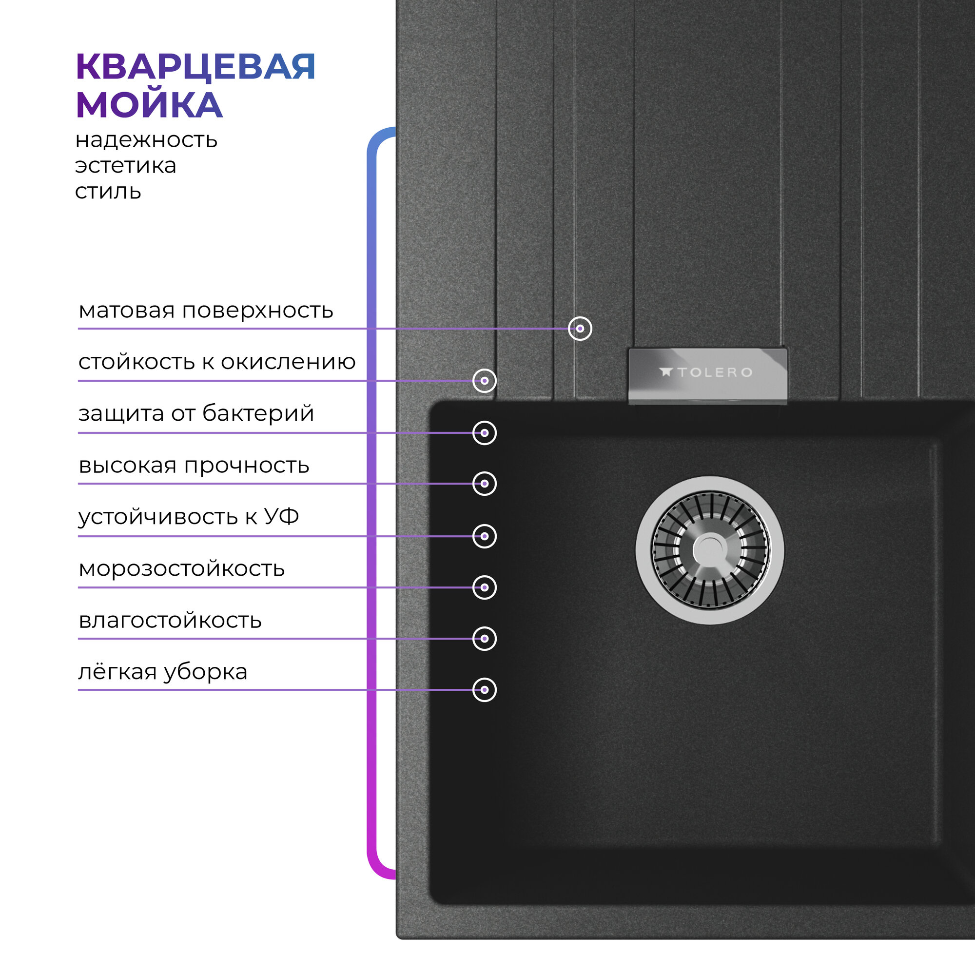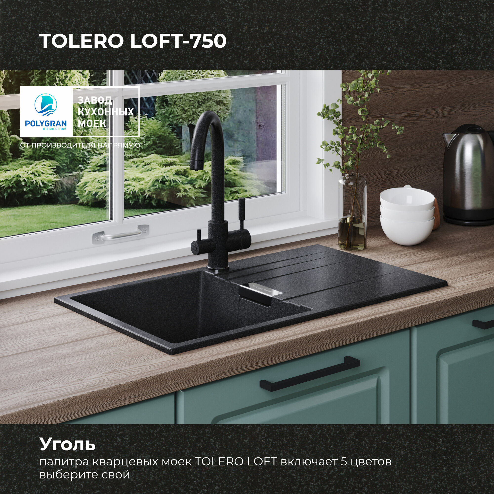 СохранитьМойка для кухни кварцевая с крылом TOLERO Loft TL-750 черная (Уголь) интересное:
