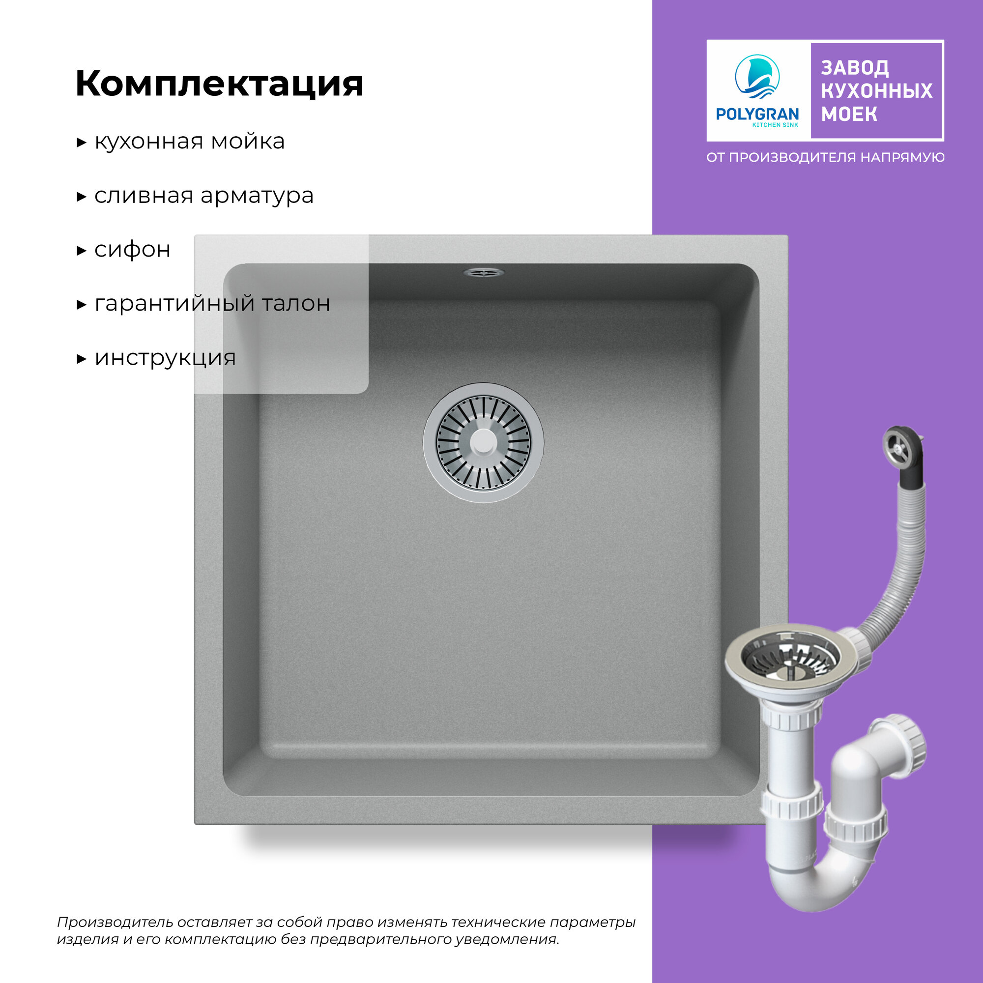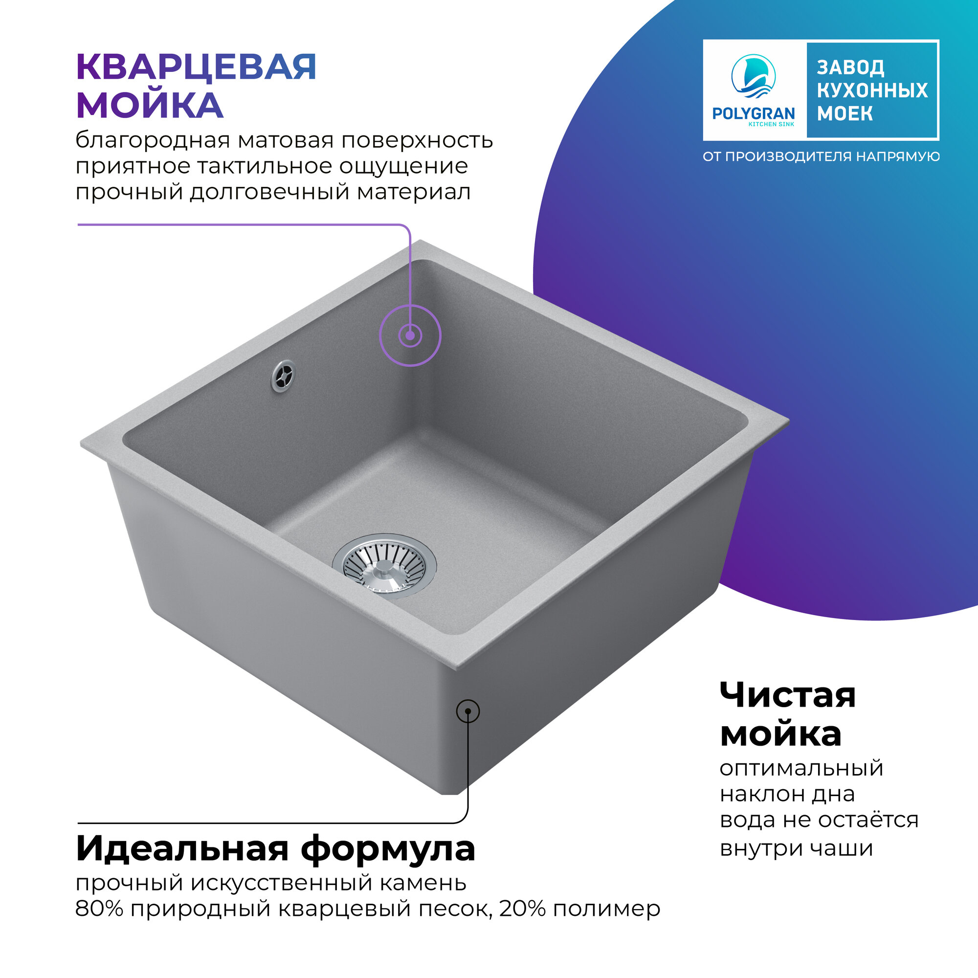 Кухонная каменная мойка 46x46 TOLERO Classic R-128 серая