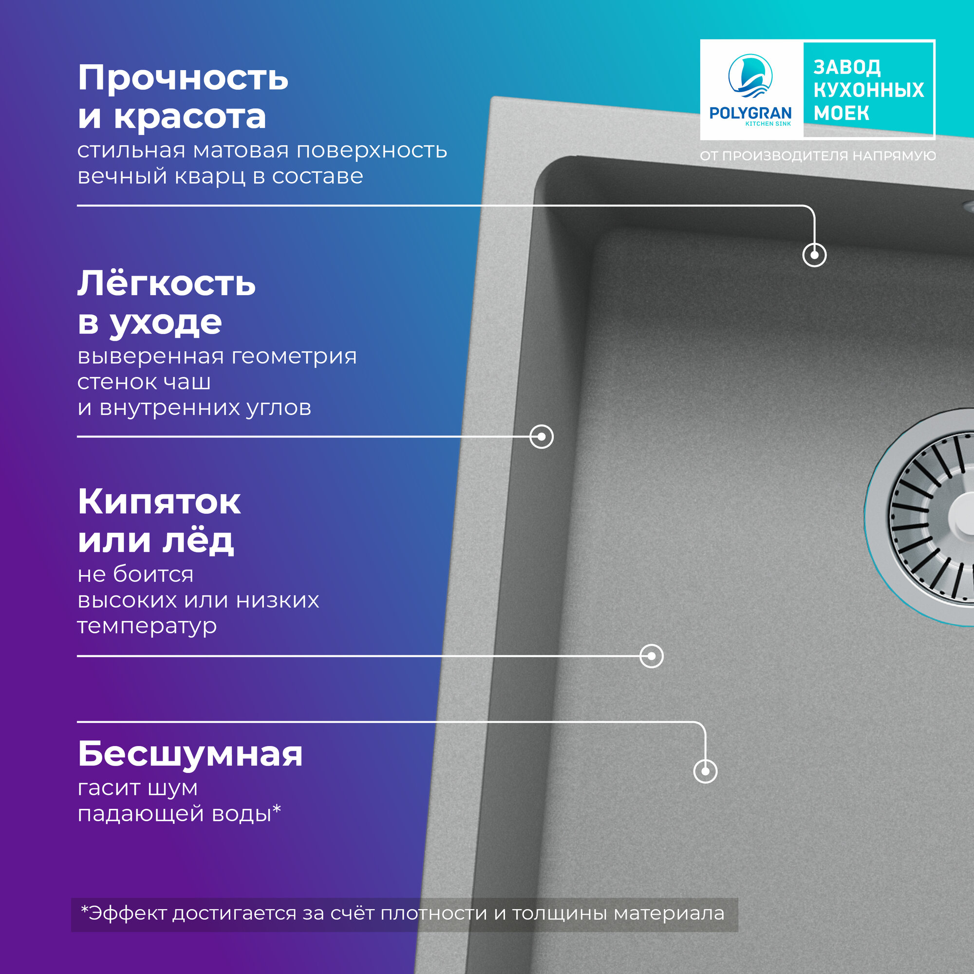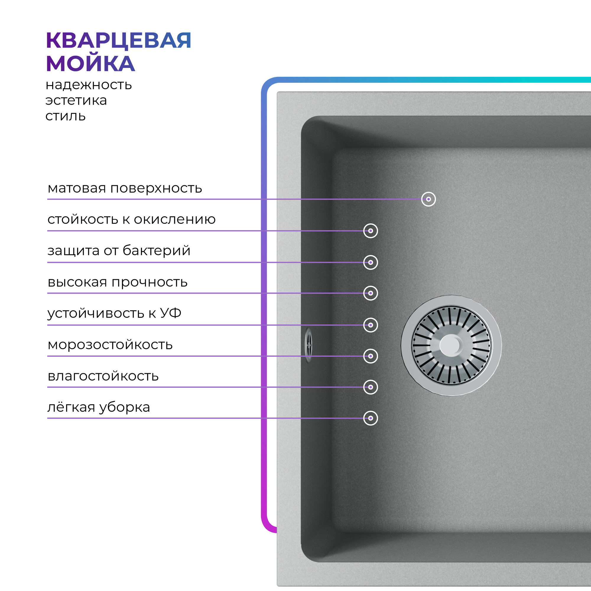 СохранитьКухонная мойка кварцевая TOLERO Classic R-128 Кварц серая (Платина) интересное:
