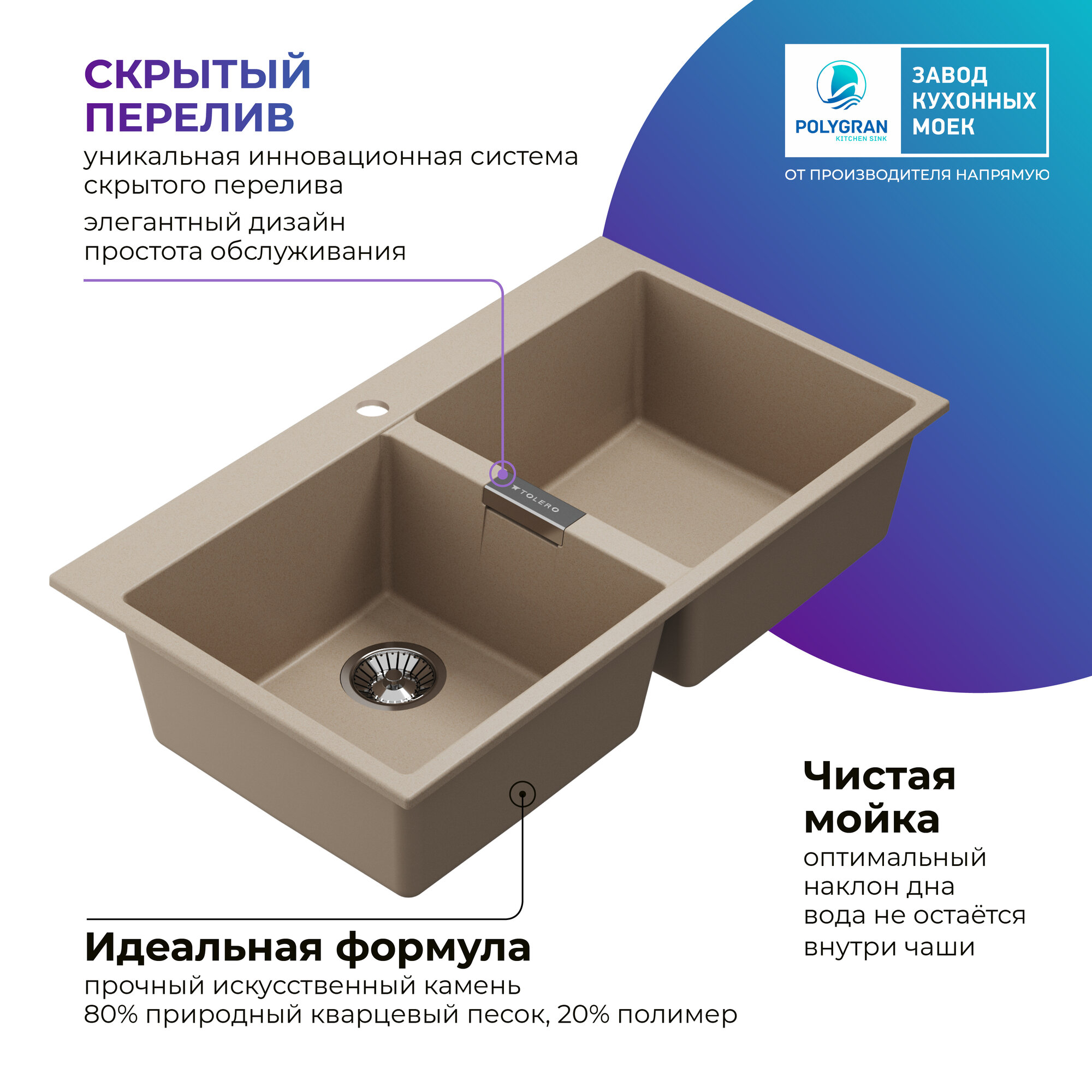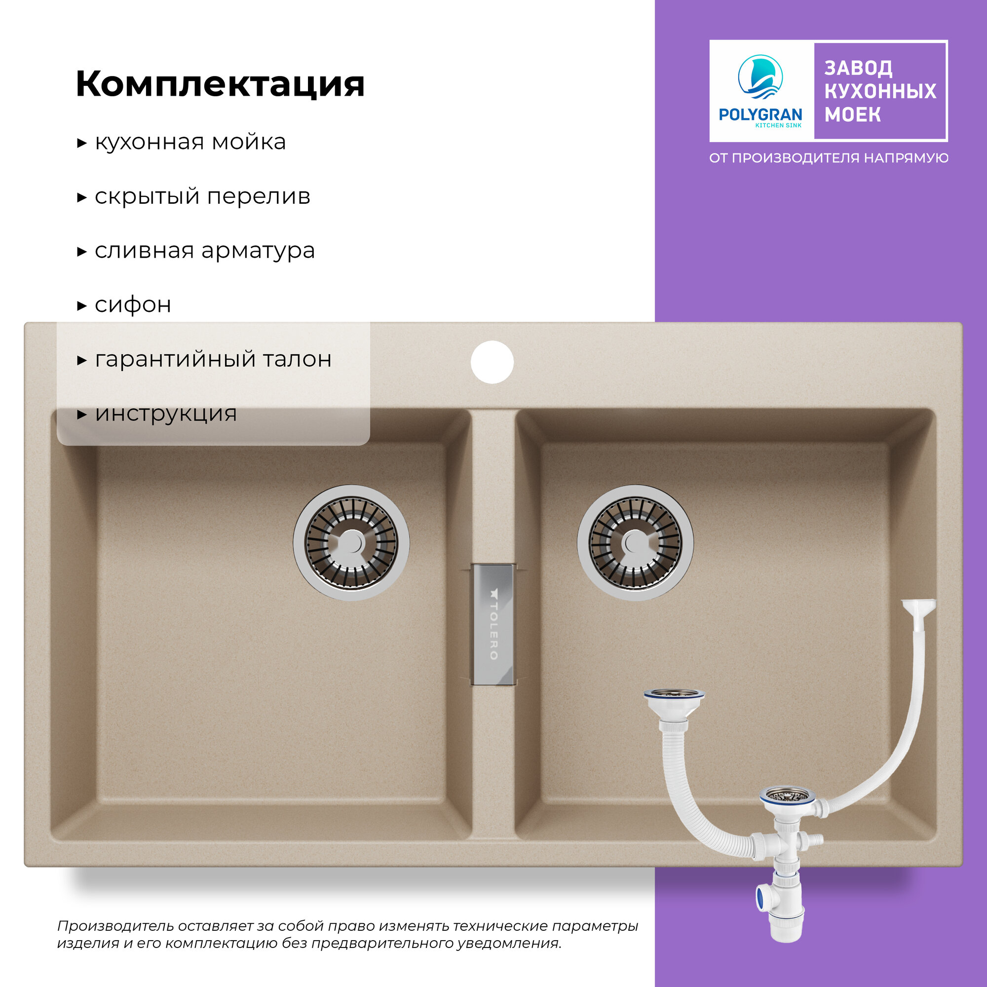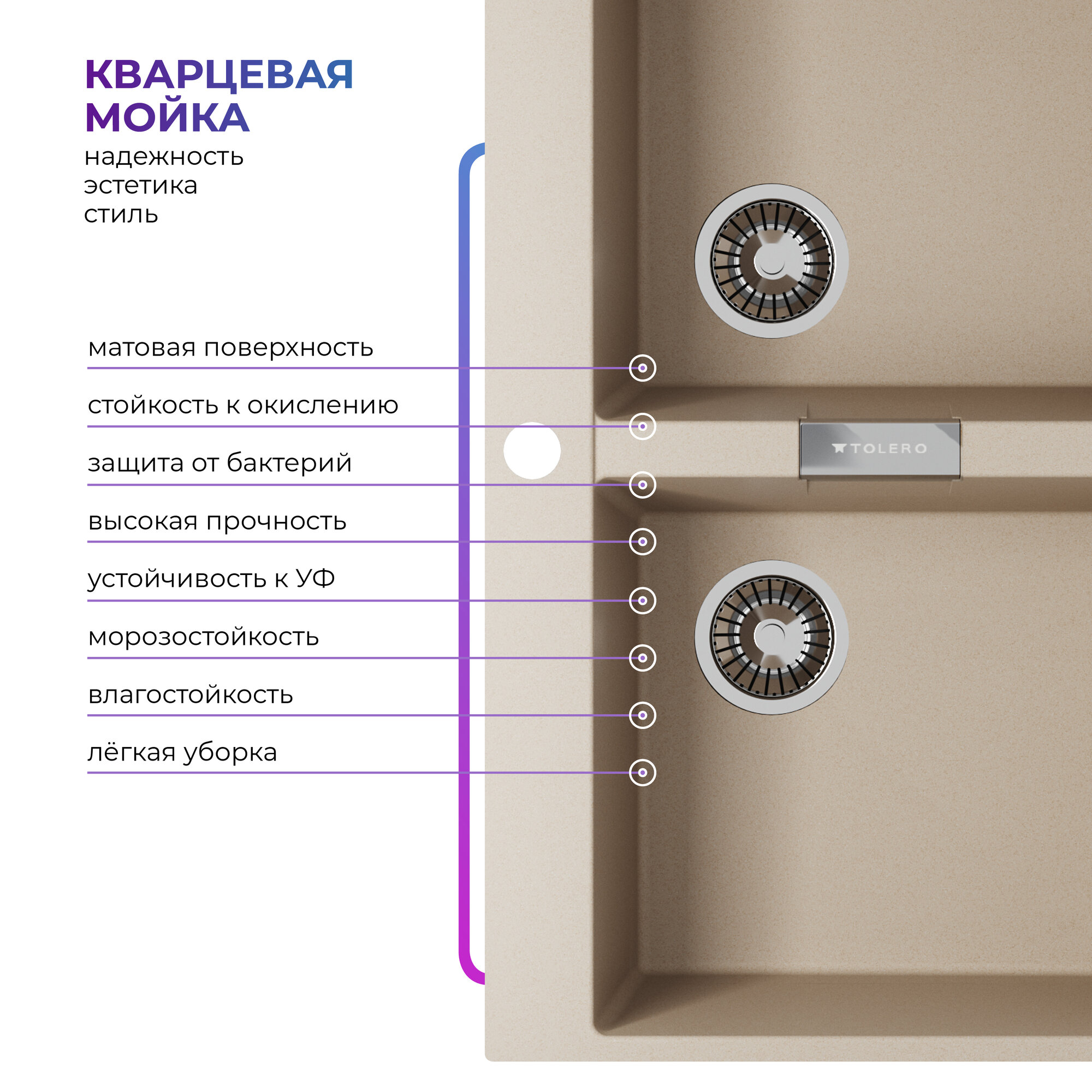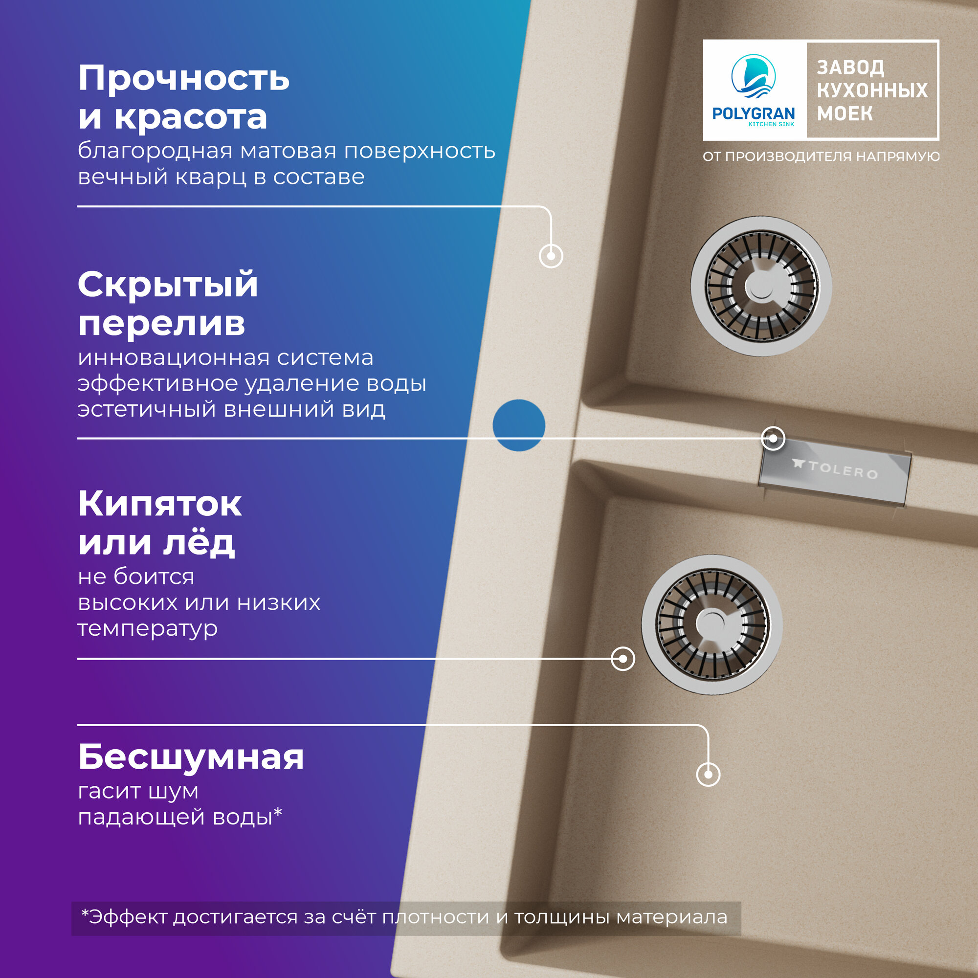 СохранитьКухонная мойка кварцевая с двумя чашами TOLERO Loft TL-862 бежевая (Саванна) интересное: