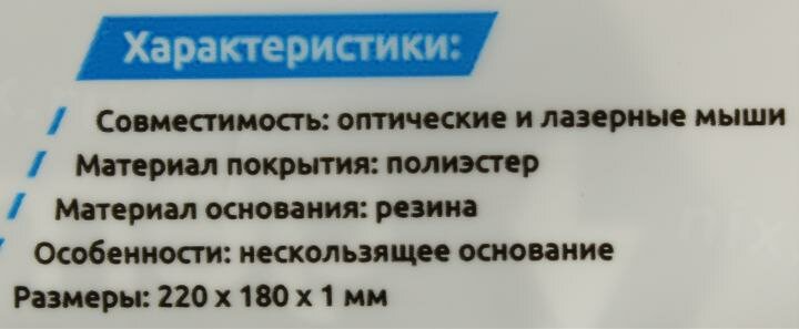 | Плюсы: | Основание резинотканевое, поверхность - ткань, не холодит руку, мышак бегает нормально (я не геймер). Цена адекватная, не вонючий. |
