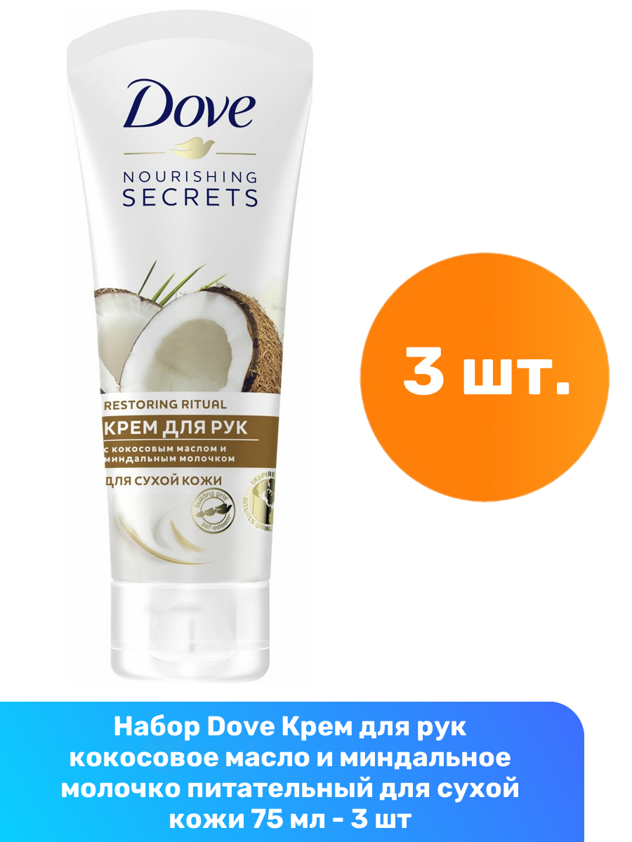 Купить Крем для рук Dove с кокосовым маслом и миндальным молочком, 75мл, 3шт