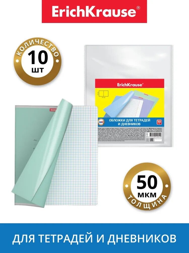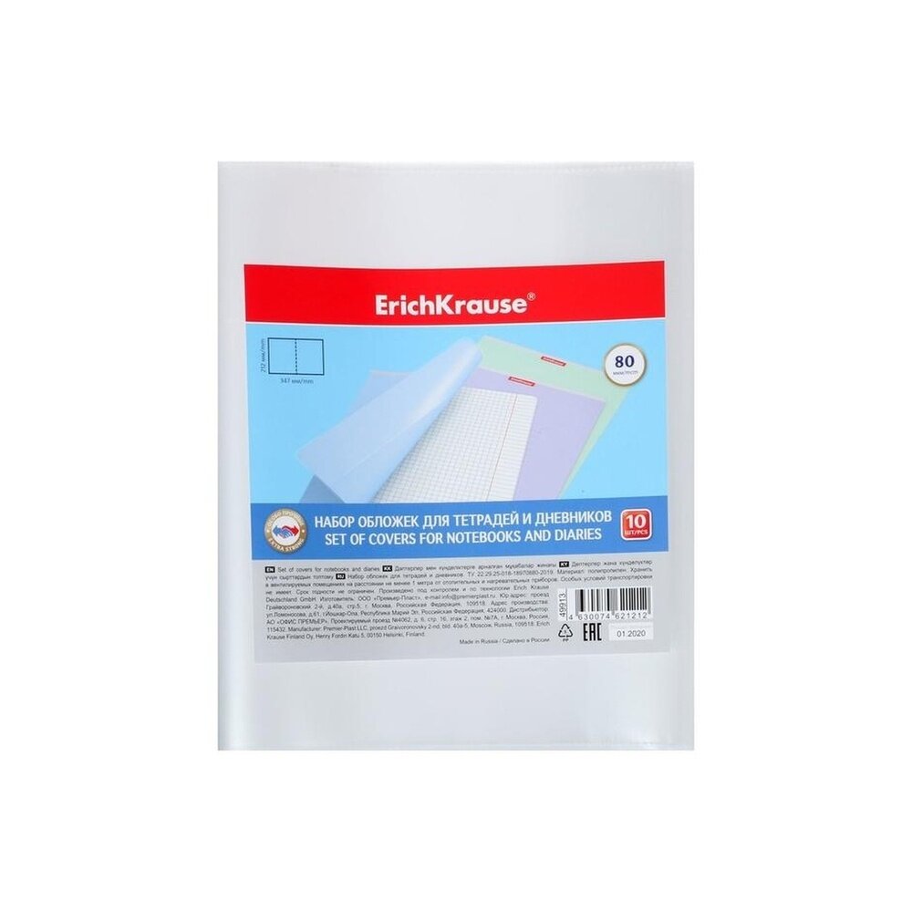 Купить Обложки для тетради и дневника Erich Krause 10 шт, прозрачные, 50 мкм, 212х347 мм (44510)