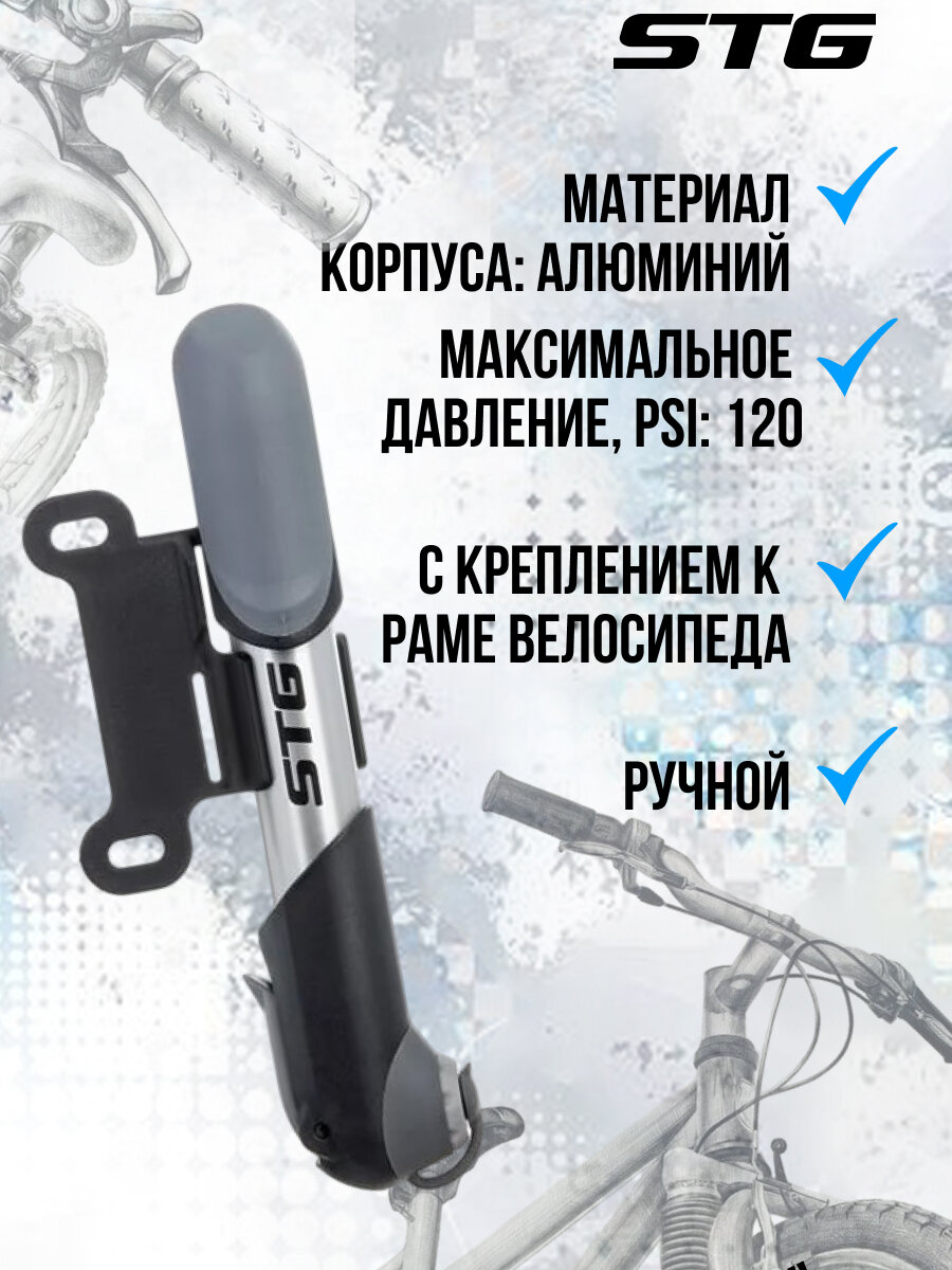 Ручной велонасос STG GP-04A, пластик, серебристый
