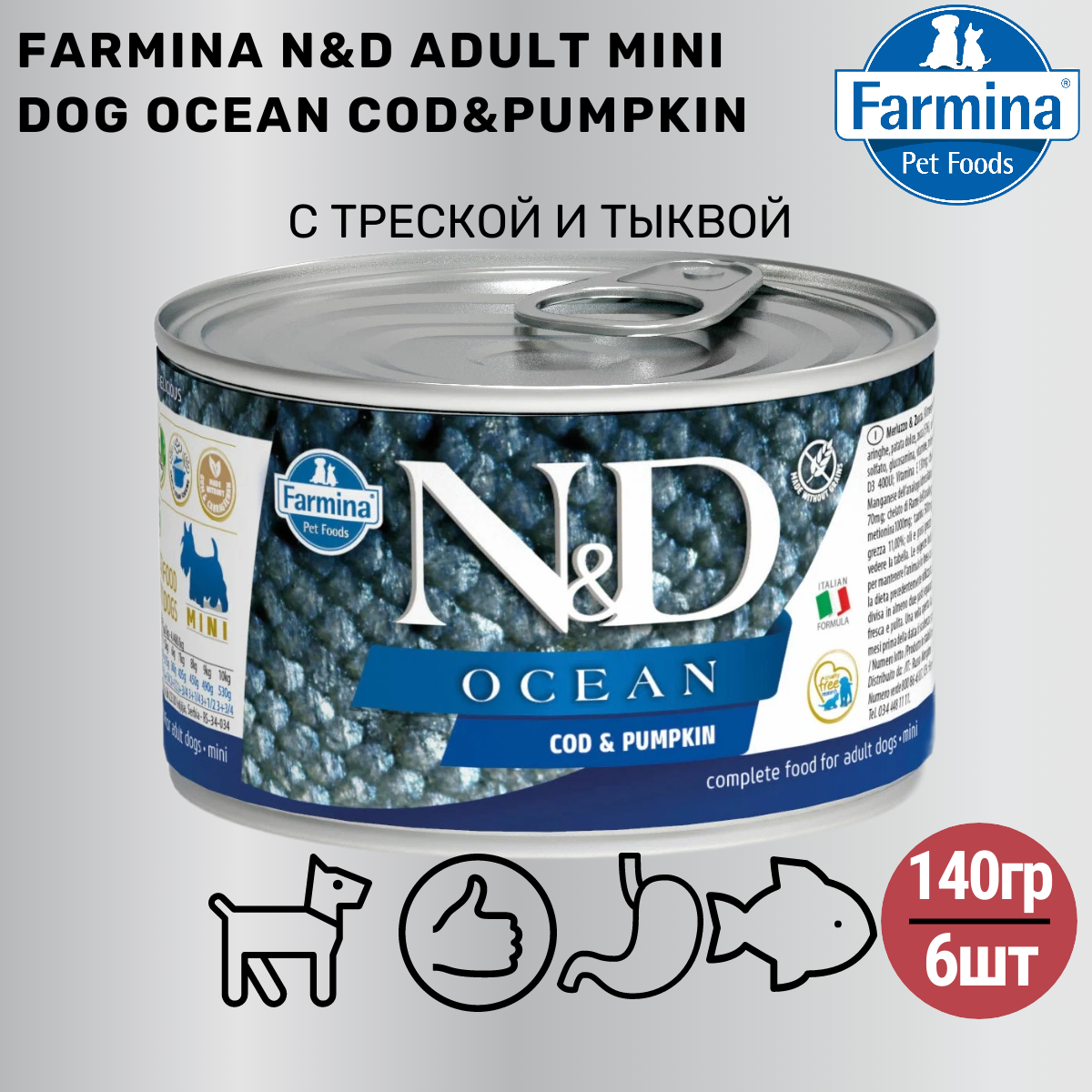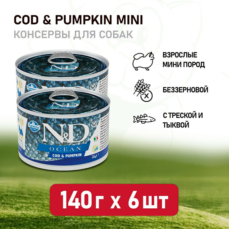 Корм консервированный Farmina N&D Ocean для собак мелких пород с треской и тыквой, 140 г*6 шт