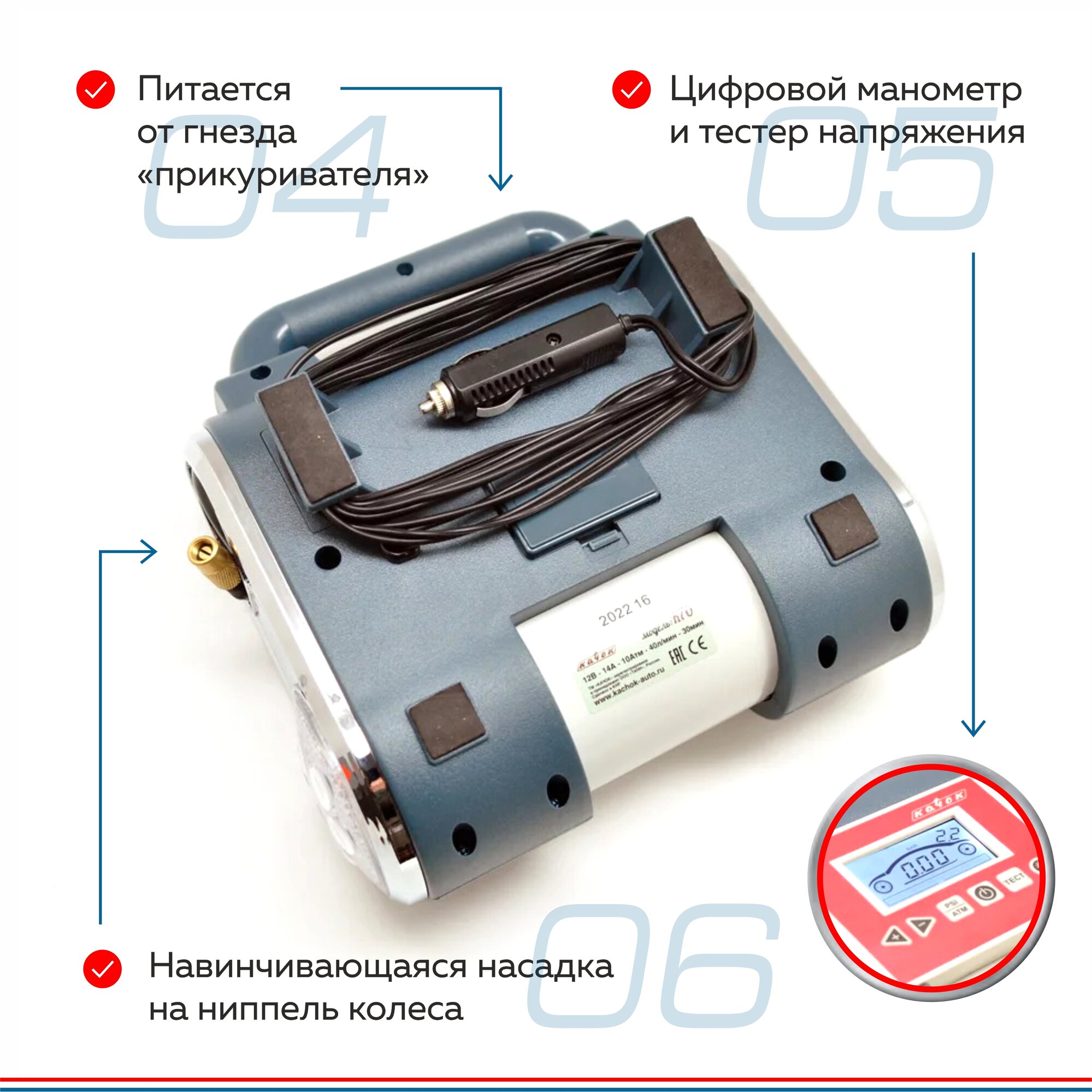 Компрессор автомобильный CityUP двухпоршневой с фонарем, 60л/мин, 300 Ватт, сумка в комплекте + переходник для АКБ