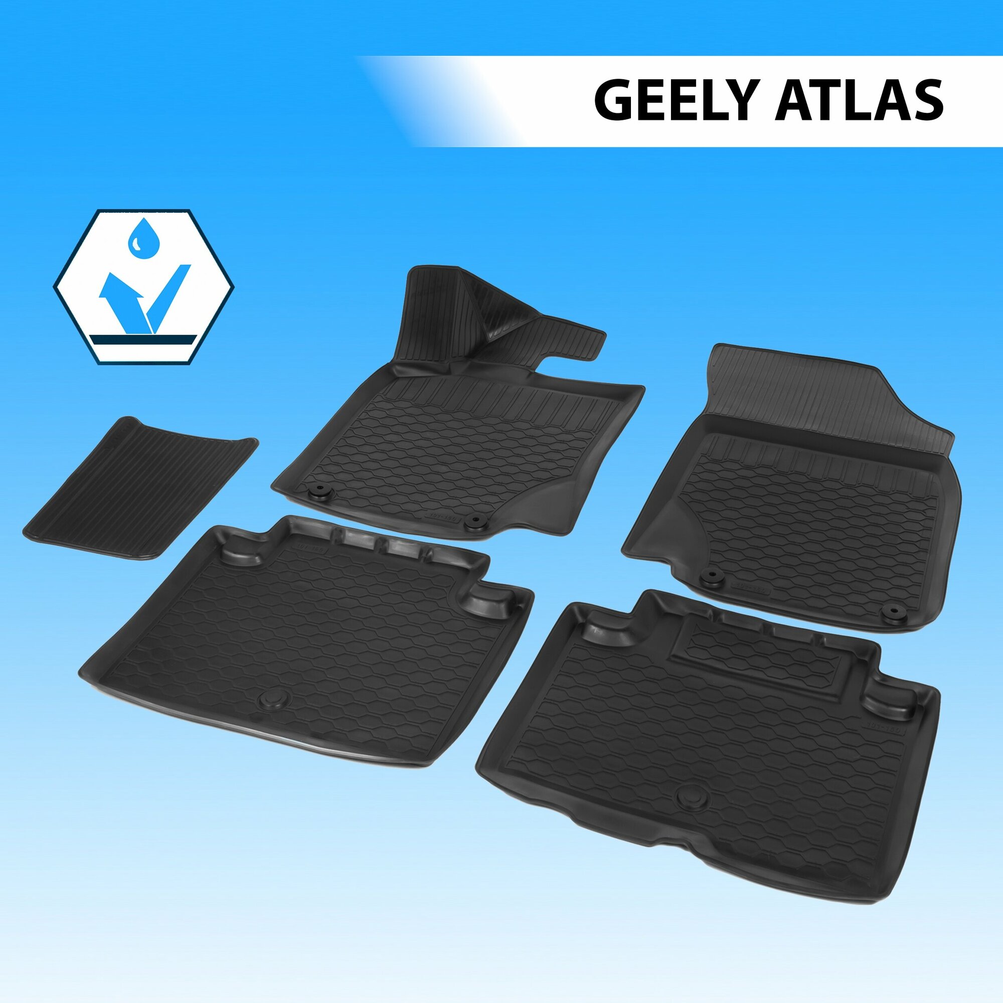 Коврики в салон автомобиля Rival для Geely Atlas 2018-н.в., полиуретан, с крепежом, 5 шт., 11903001