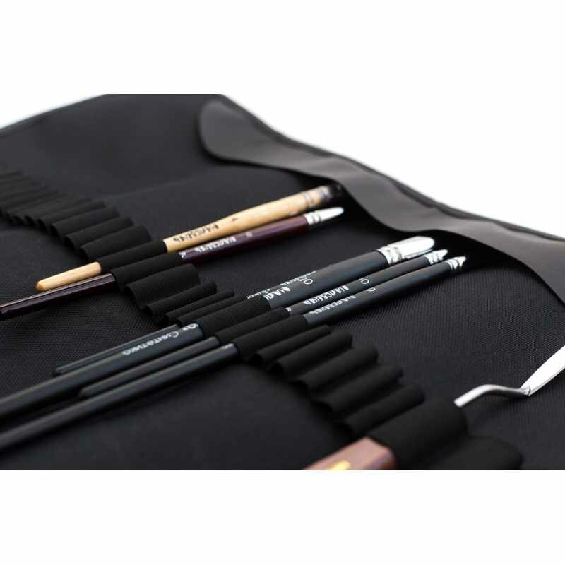 Пенал-скрутка для кистей на липучке, 340 х 480 мм, на 24 предмета, Малевичъ, чёрный 195006