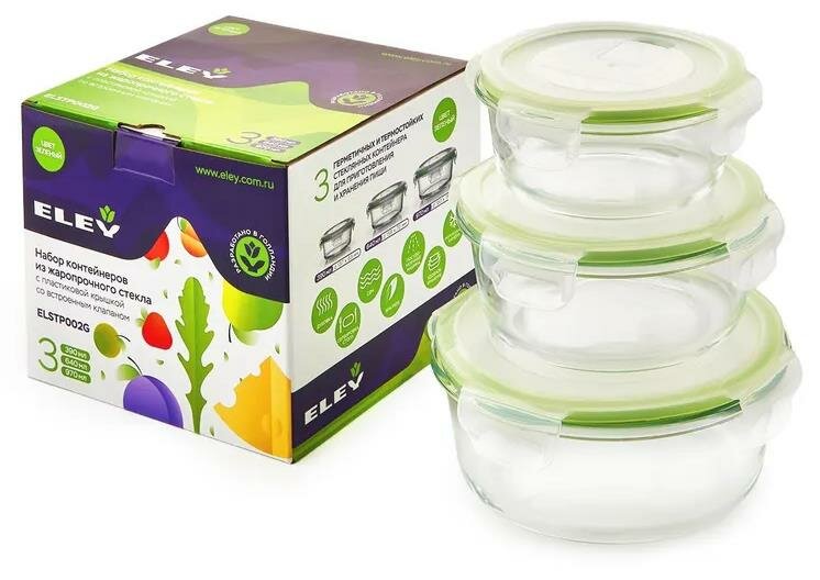 Купить Набор круглых контейнеров Eley ELSТP002G 390 мл: 640 мл; 970мл, зеленые .