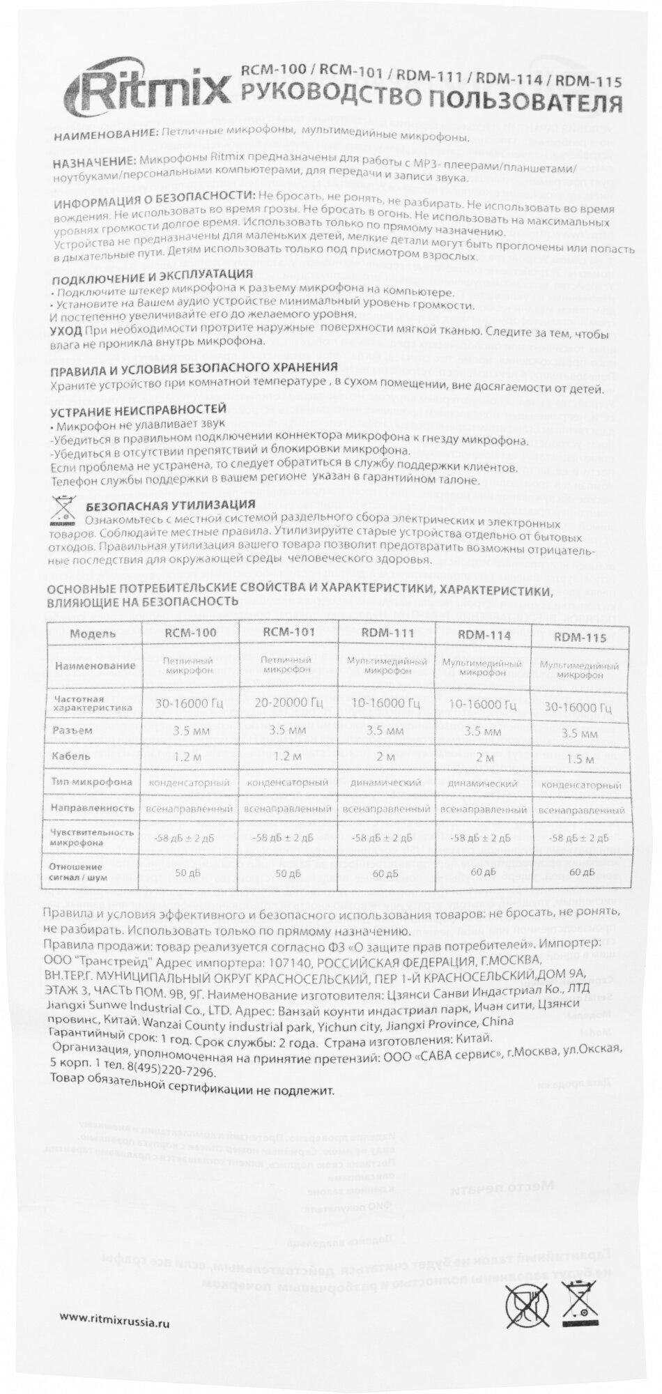 Ritmix RDM-115 Диапазон частот 30 - 16000 Гц, чувствительность 58 дБ, длина кабеля 1.5м, штекер 3.5 мм