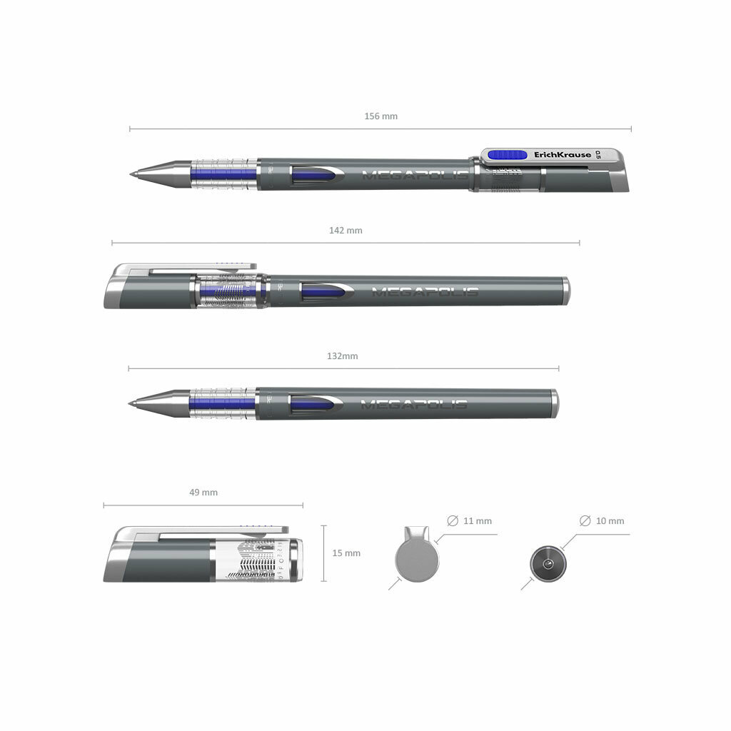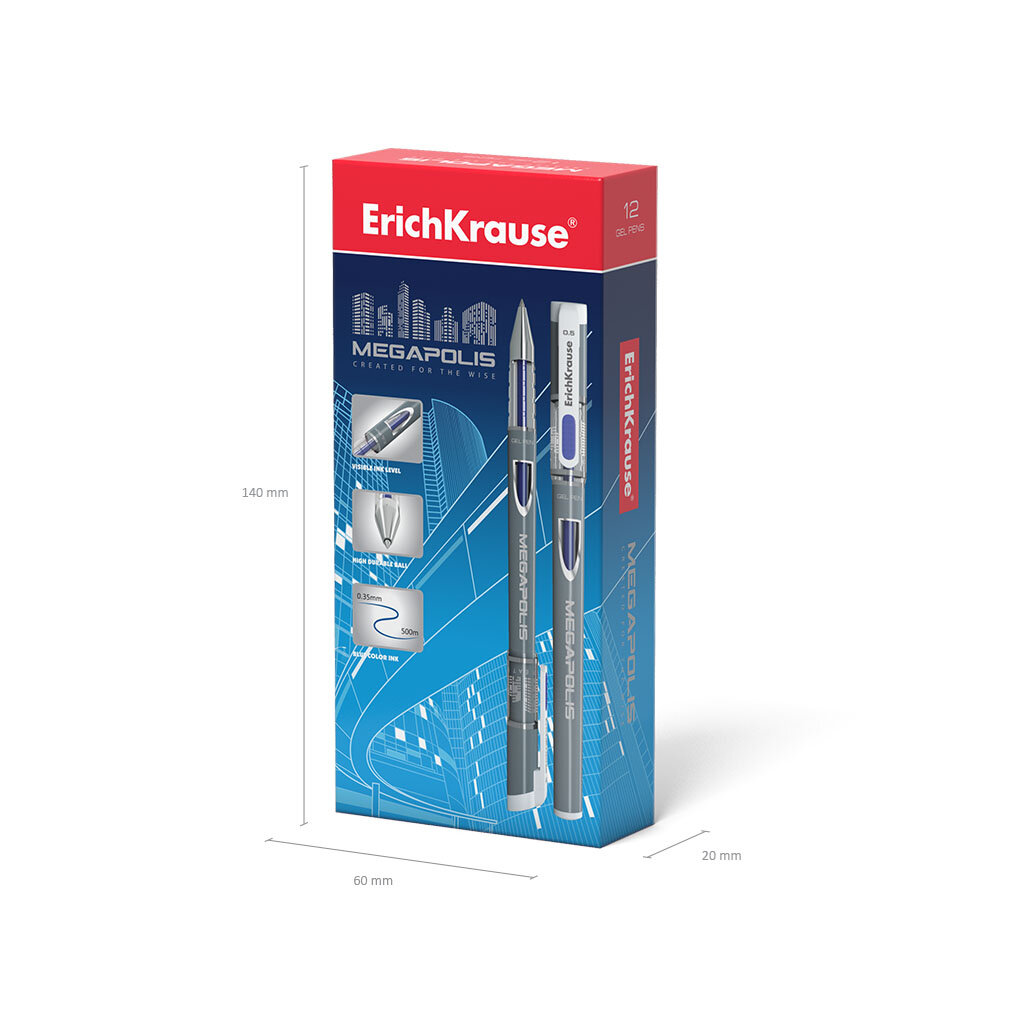 Ручка гелевая ERICH KRAUSE Megapolis Gel 0,5 мм, синяя, 12штук