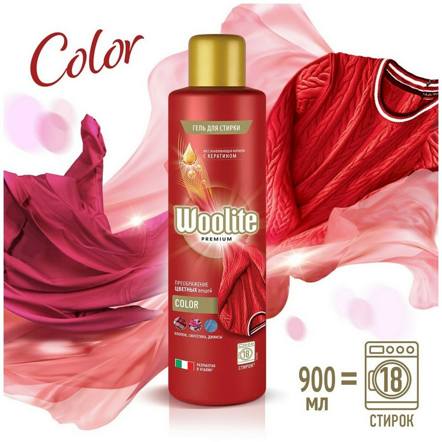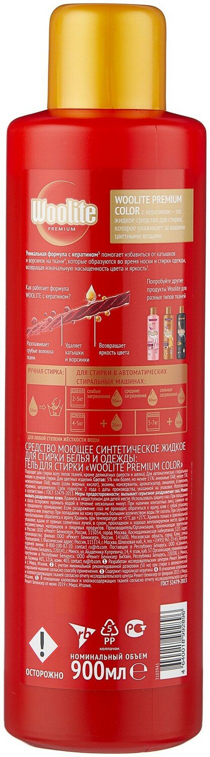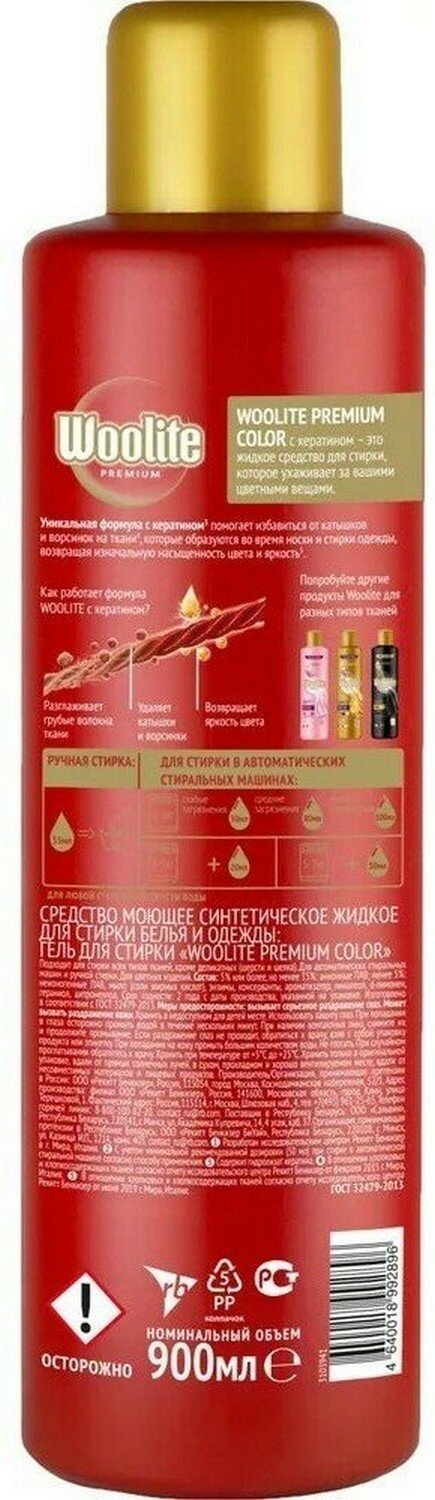 Гель для стирки WOOLITE Premium Color для цветного белья, 900 мл