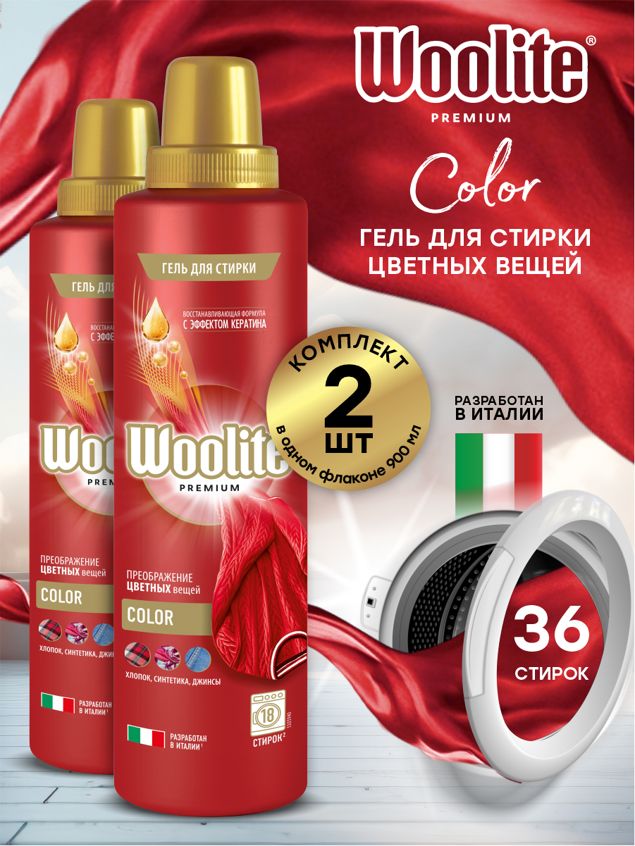 Woolite Гель для стирки белья и одежды Premium Color, 900 мл, 2 уп.