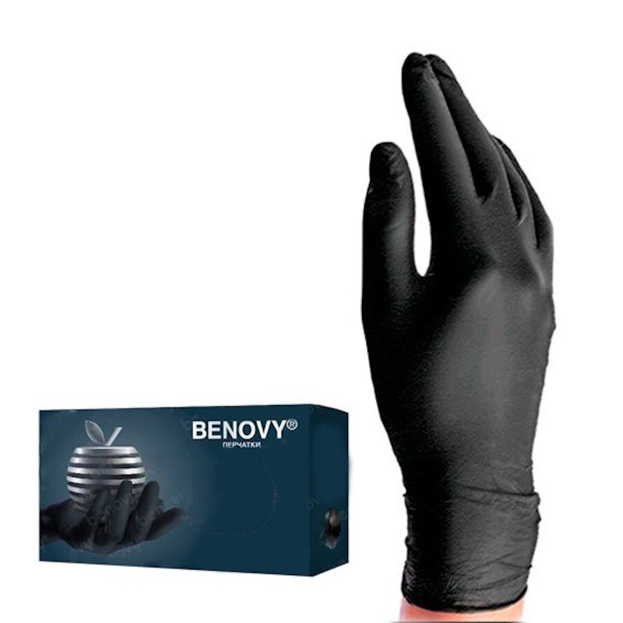 Benovy черные нитриловые перчатки (100шт) размер М